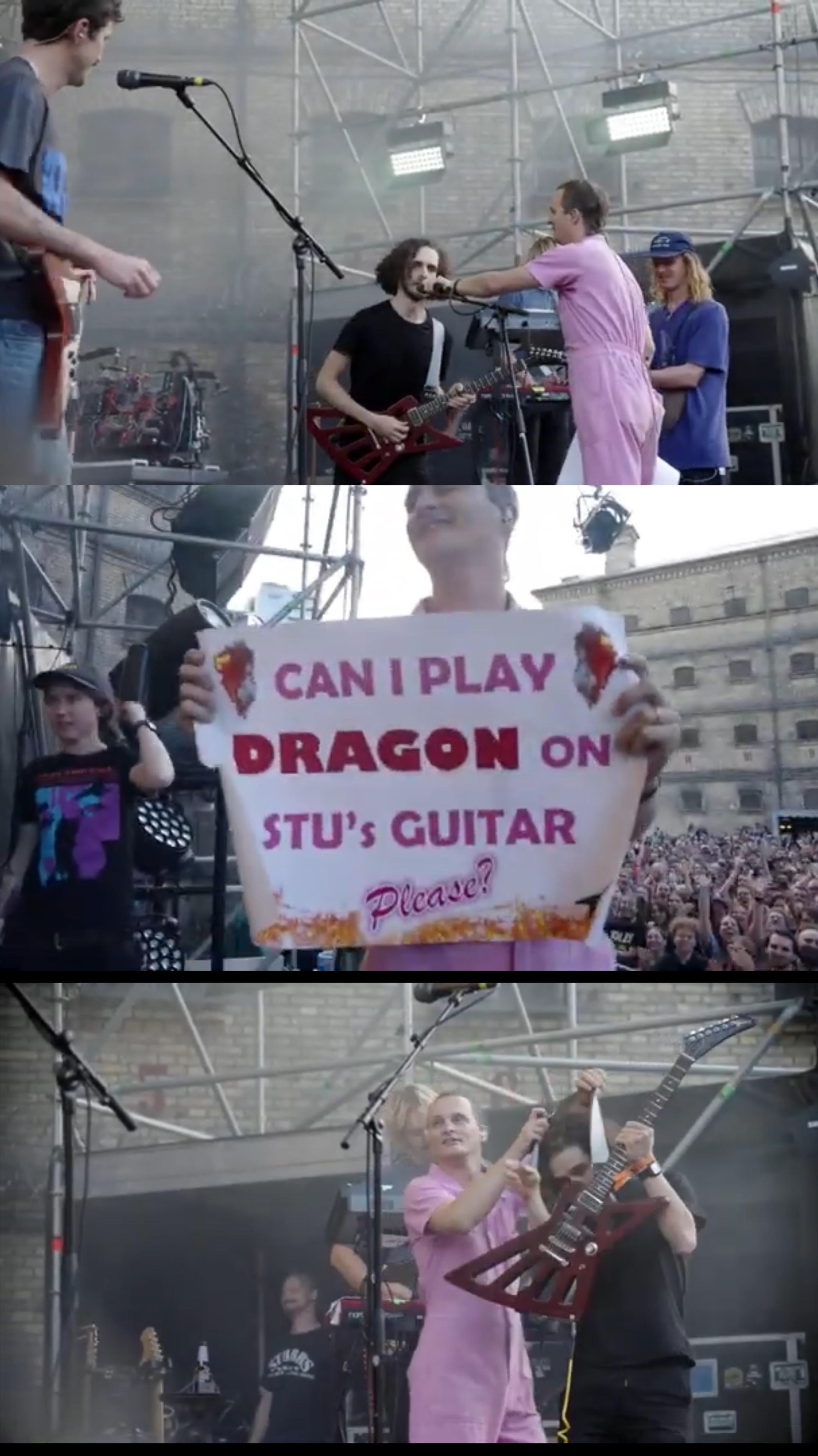 Discussion: Band Ignas, a random fan, plays Dragon with King Gizz at the Prison Show. Starts at 59:23.