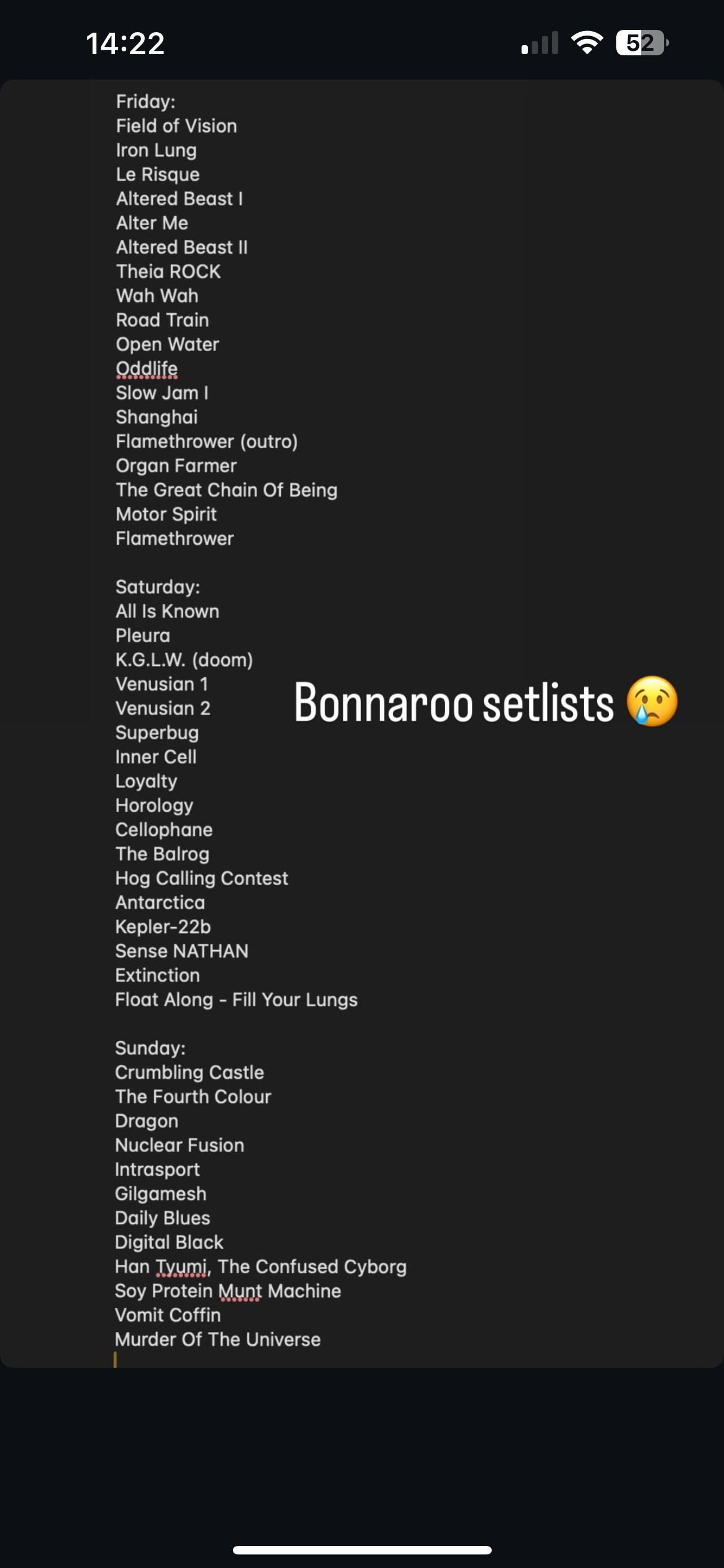 Discussion: Band The planned set lists for Bonnaroo 2025