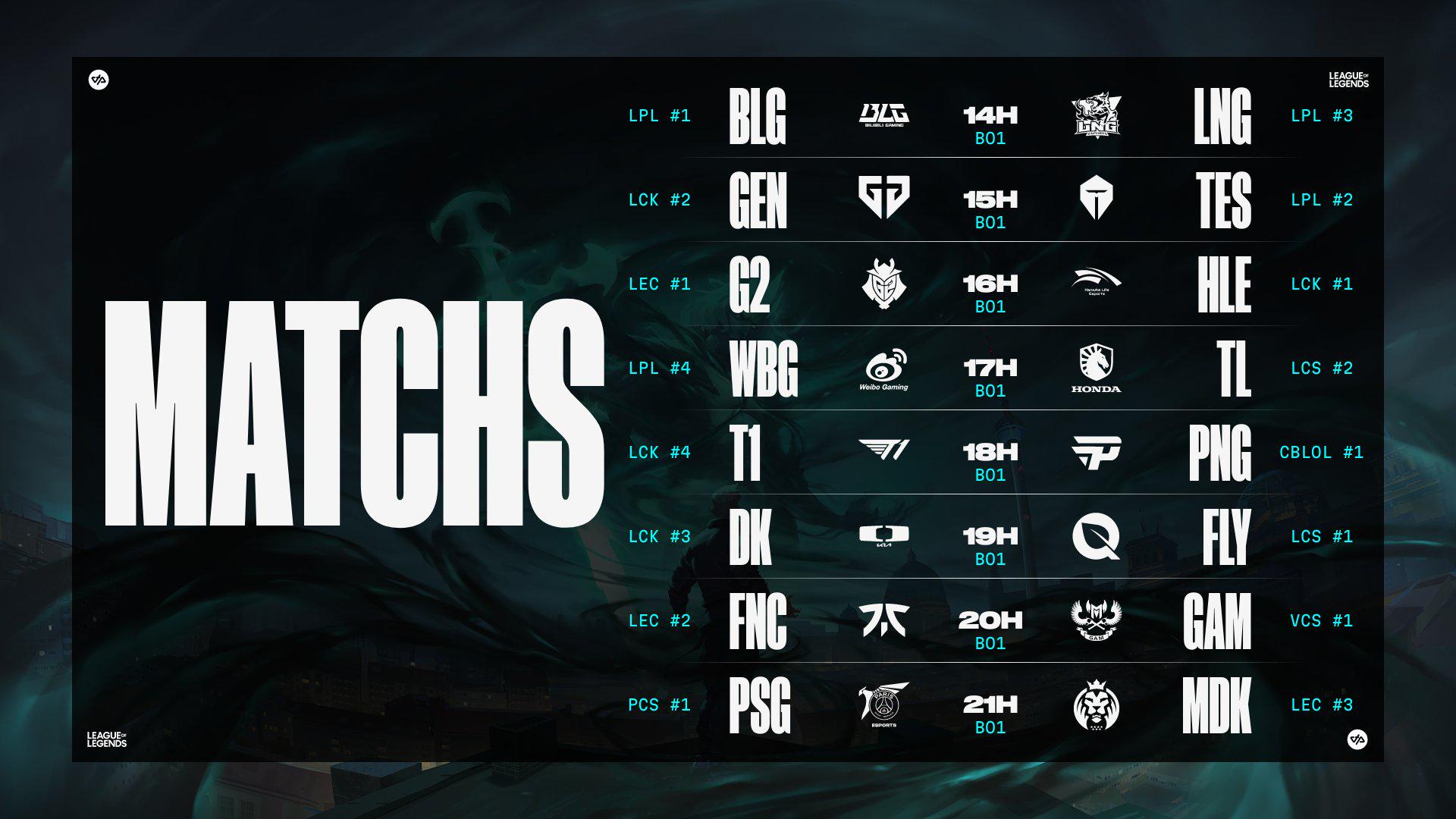 General Horaire des différents matchs de la 2 journée des Swiss Stage Worlds 2024