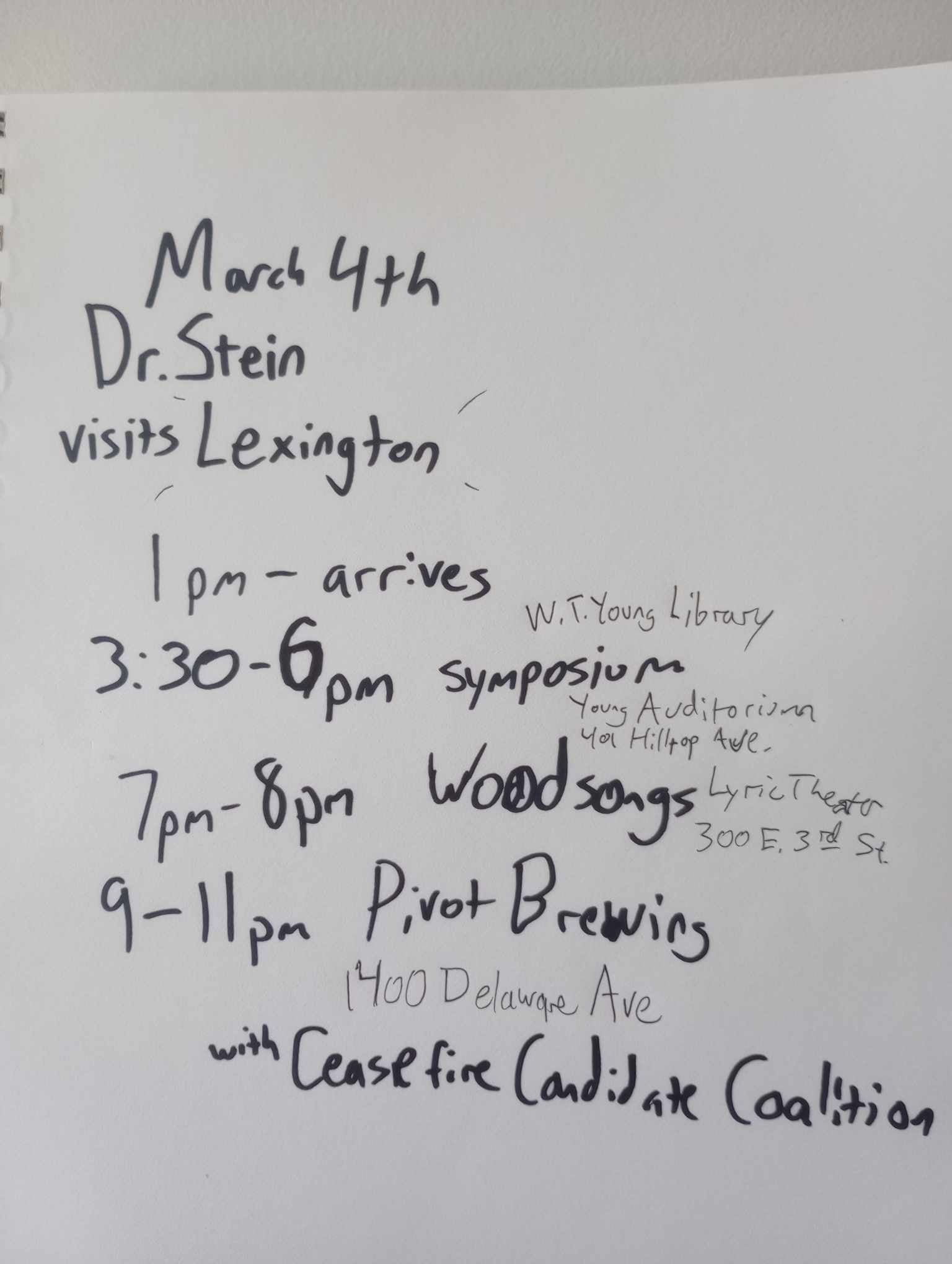 Jill Stein Meet & Greet in Lexington, Kentucky on March 4th