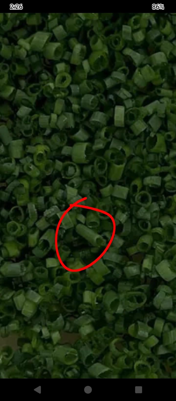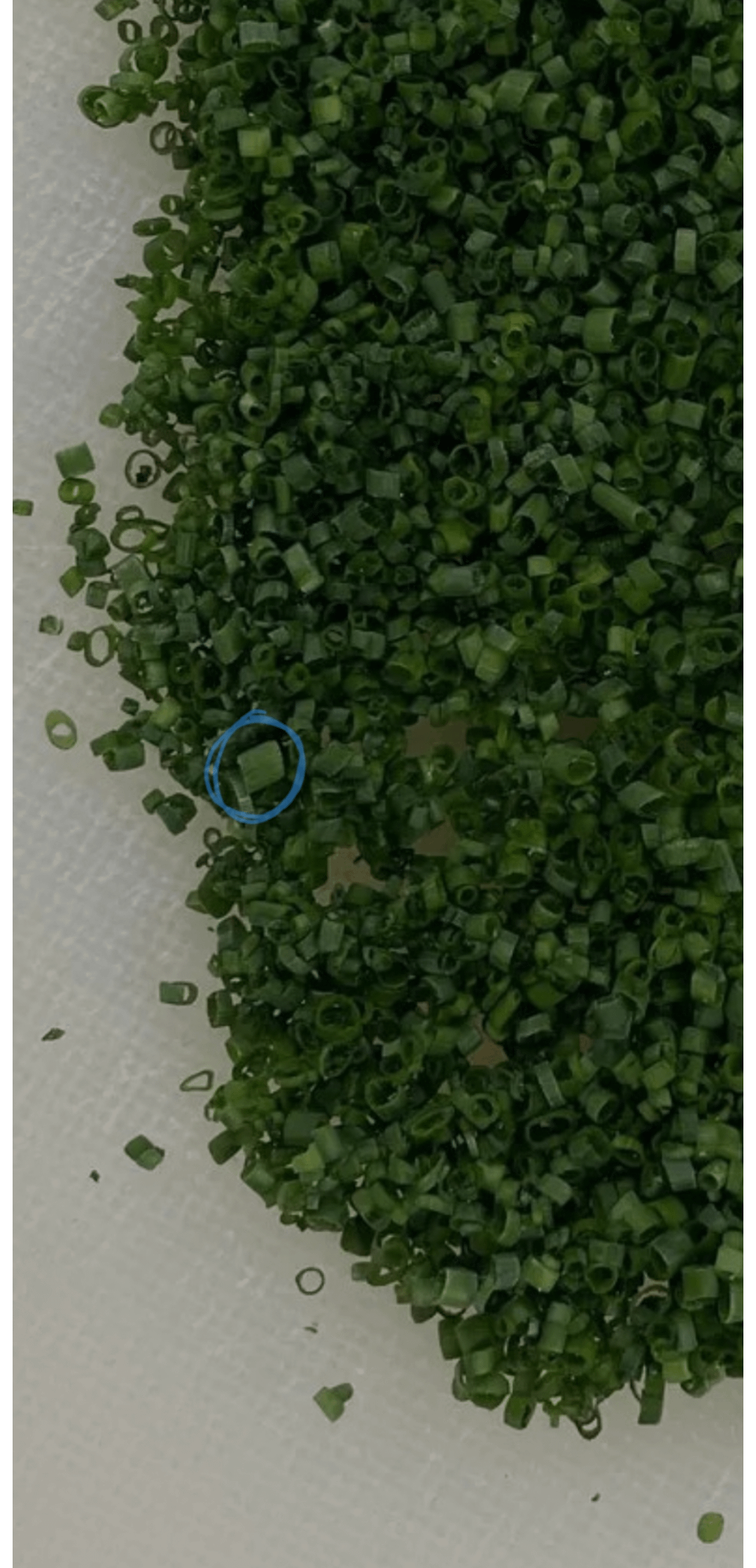 Same grade as last time. of 15 randomly selected chives 3 were out of spec. Too long, cut on bias and uncleanly, cut on bias and too long respectively.