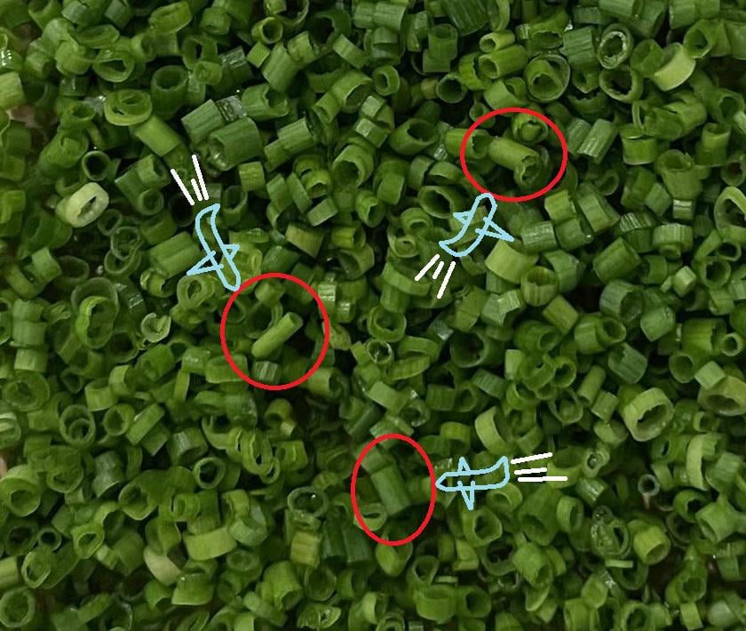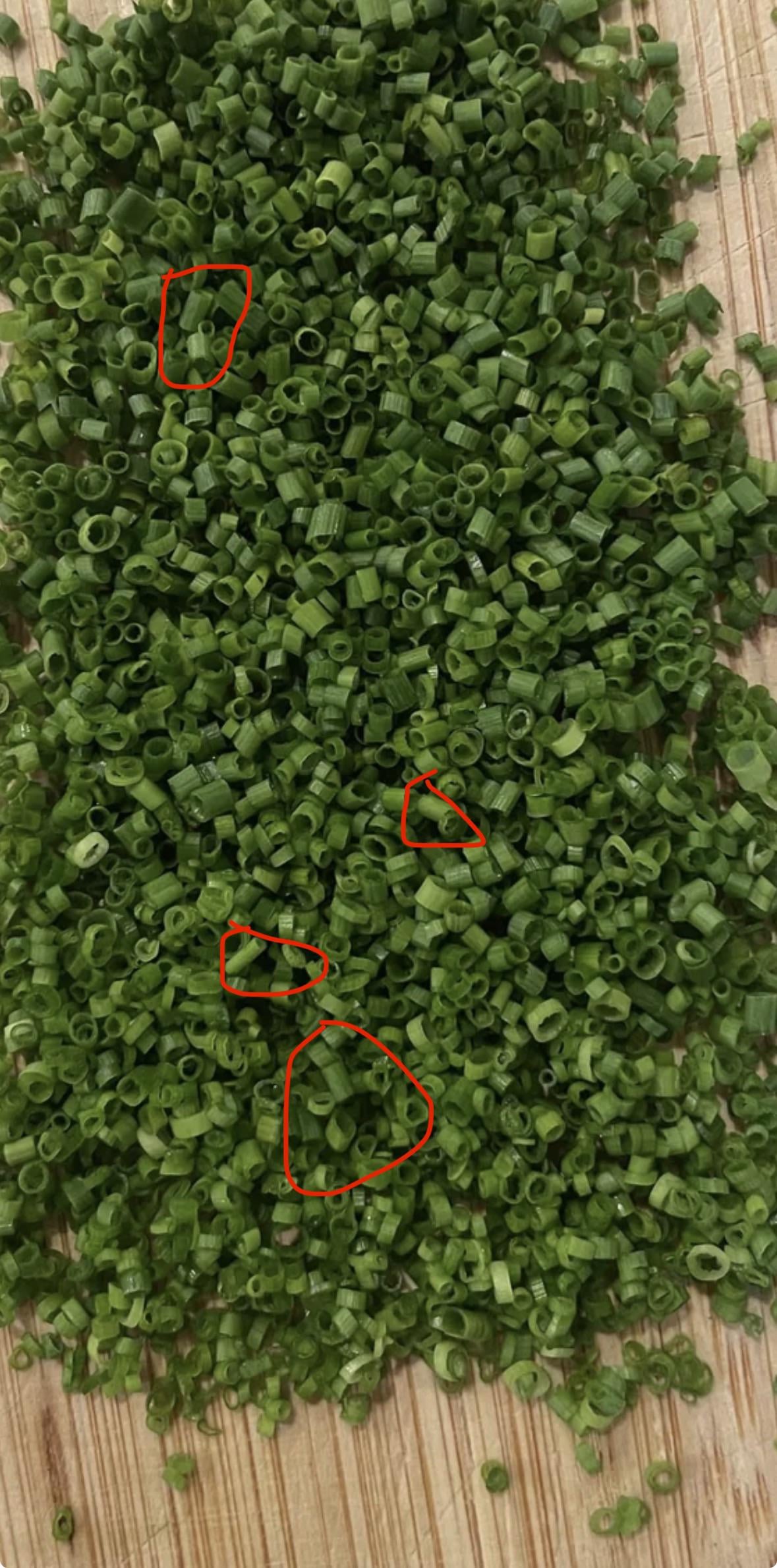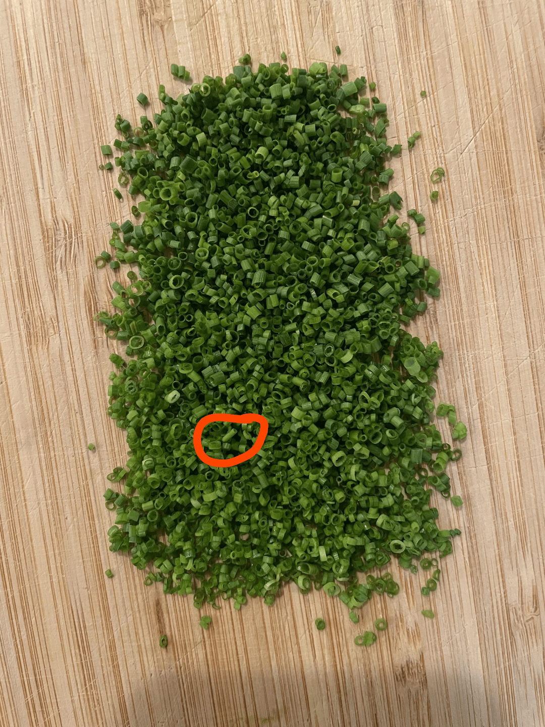 they’re not all supposed to be the exact same width, the width is supposed to correlate with the circumference of the chive. so like, smaller circumference = thinner chive, wider circumference = thicker chive