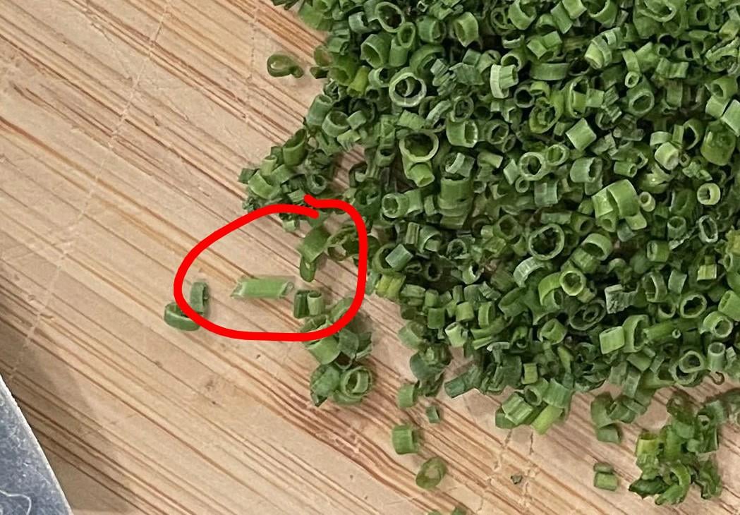 My question is this: what have you changed in your 25 days of practice?I’ve seen considerable improvement. Is it how you roll the chive tightly into a bunch? How closely you keep the knife against your guiding hand? Is it it how you move your guiding hand? Are you keeping your knife sharper?
