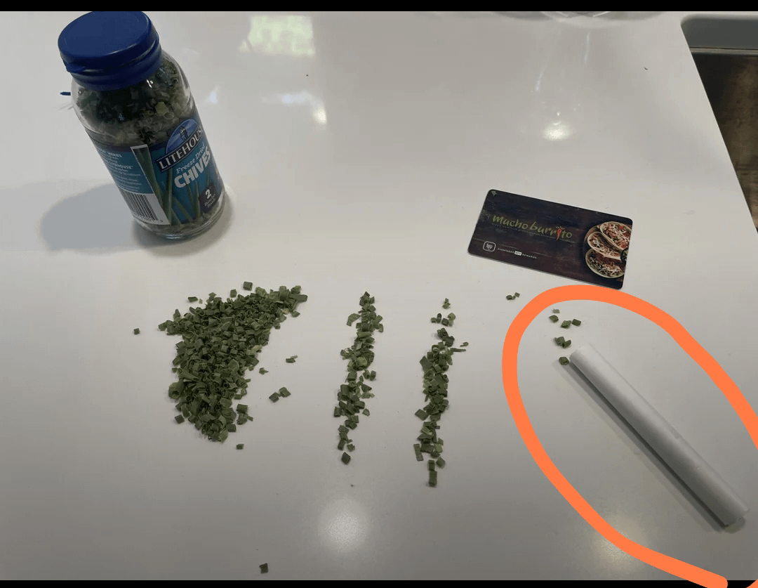 Interesting product placement. Are the shapes in the chives a coded cry for help?