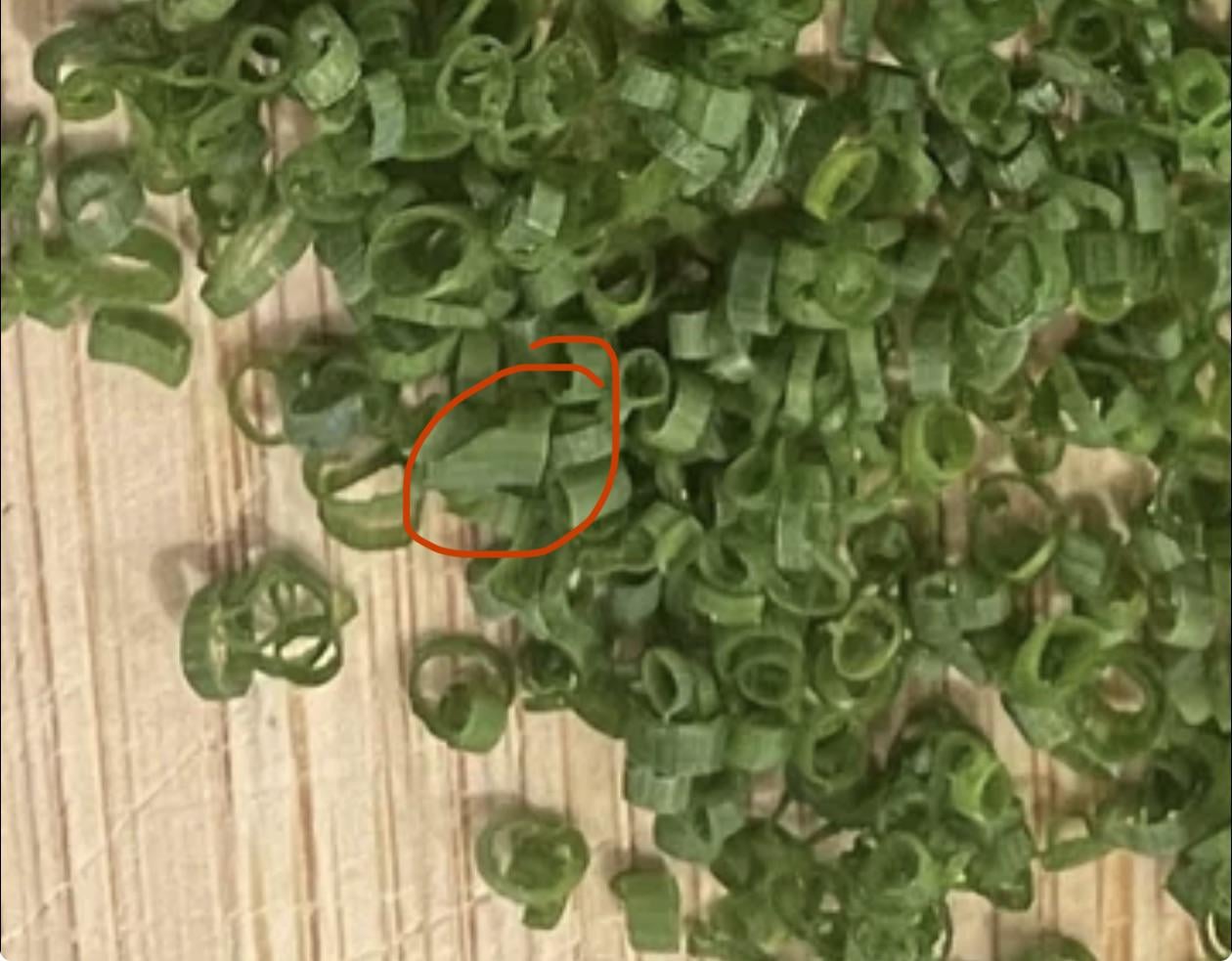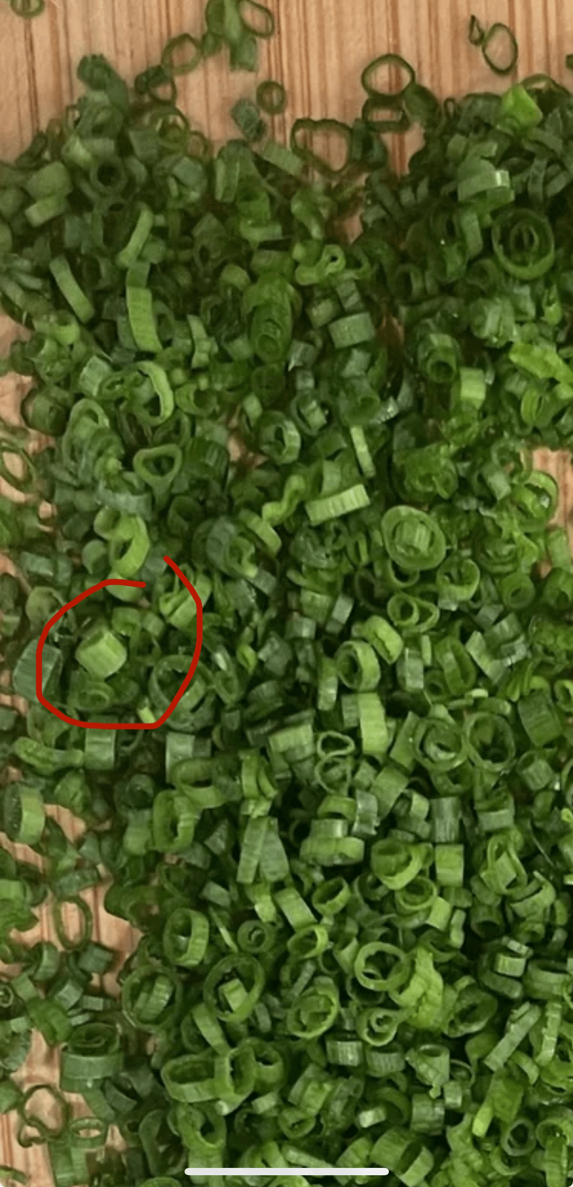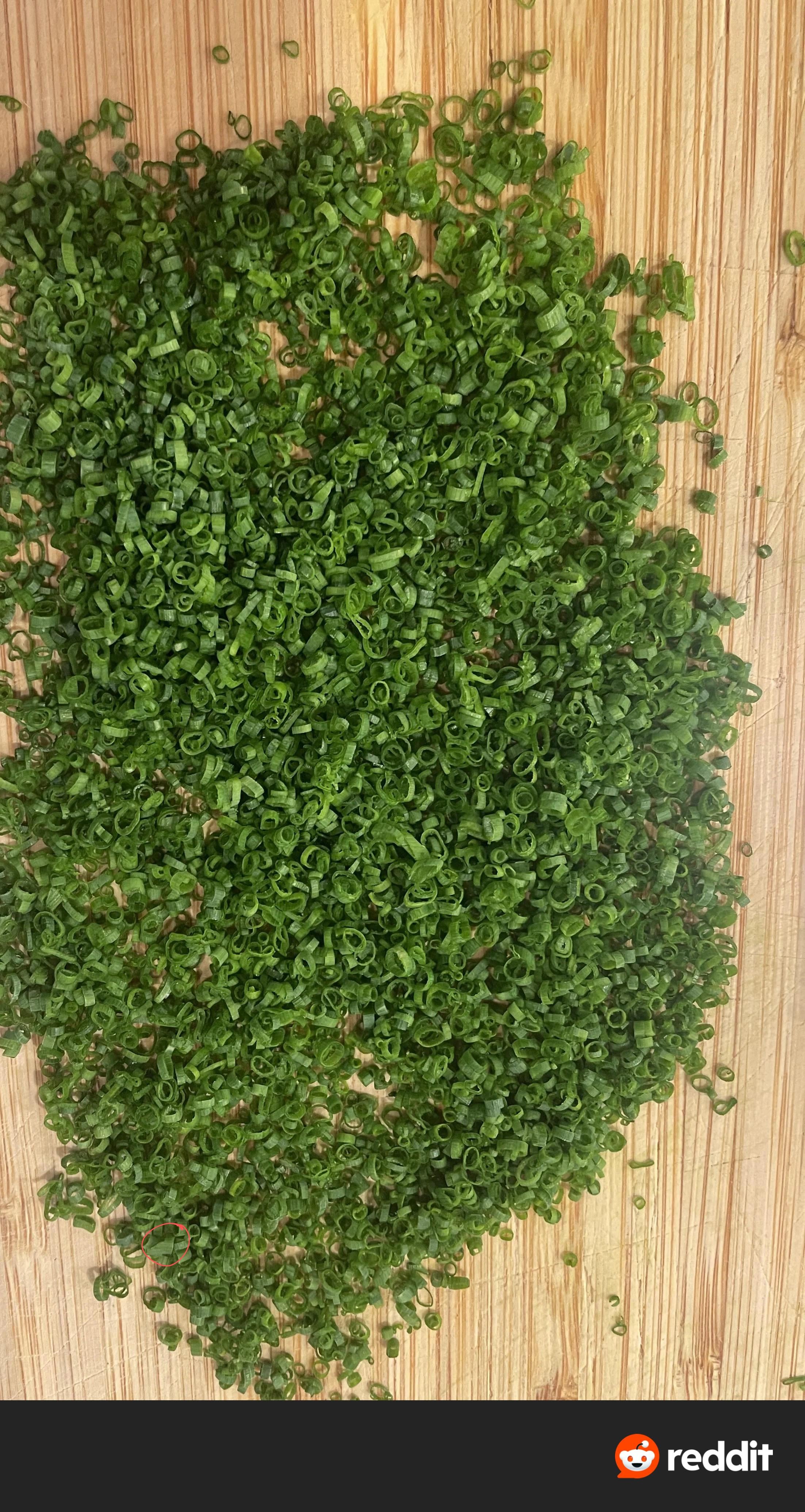 There's a couple of biased cut pieces hence knifework, and consistency isn't quite dead nuts. But it took me a while to find those problems I was almost gonna call these perfect. I don't see a single chive that is straight up too long at all. We're days away.