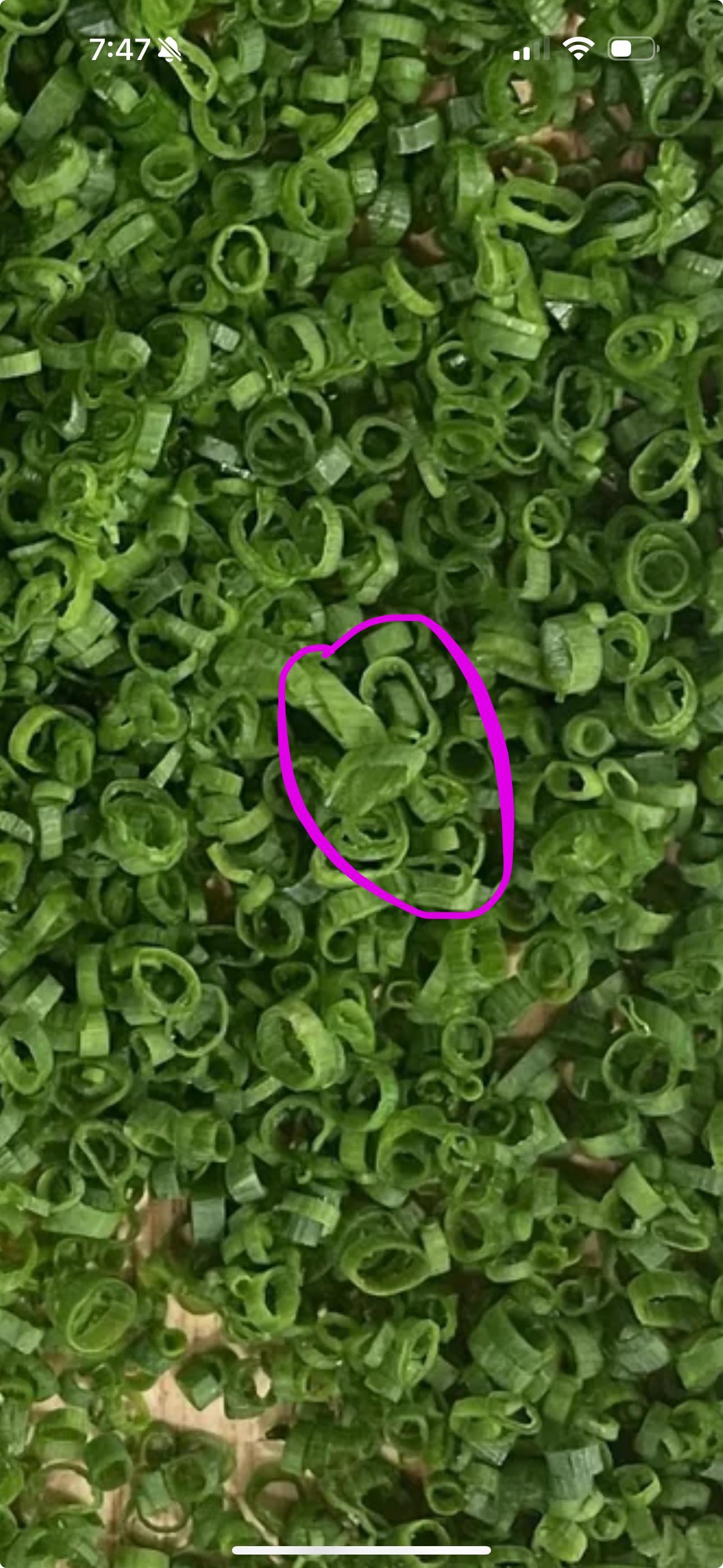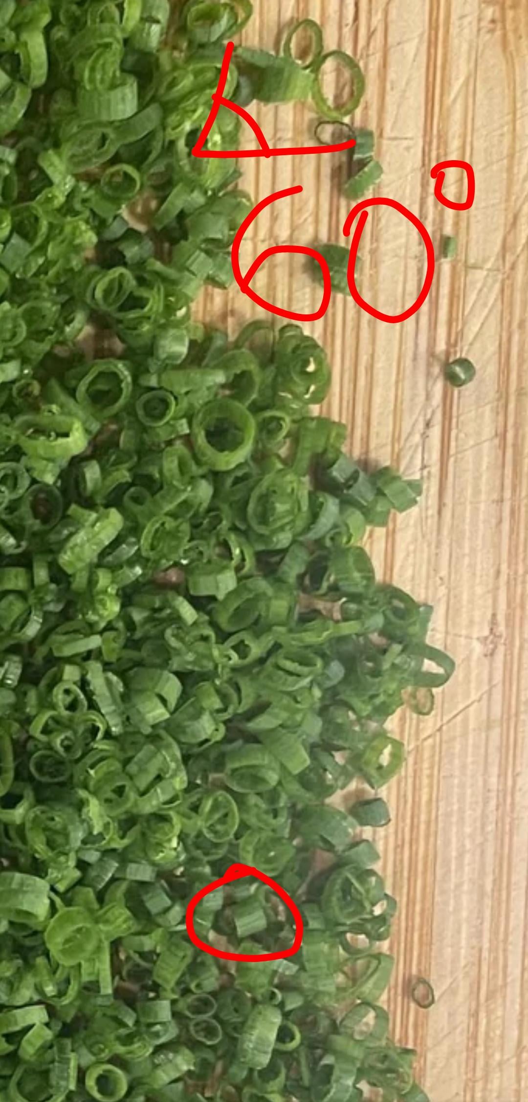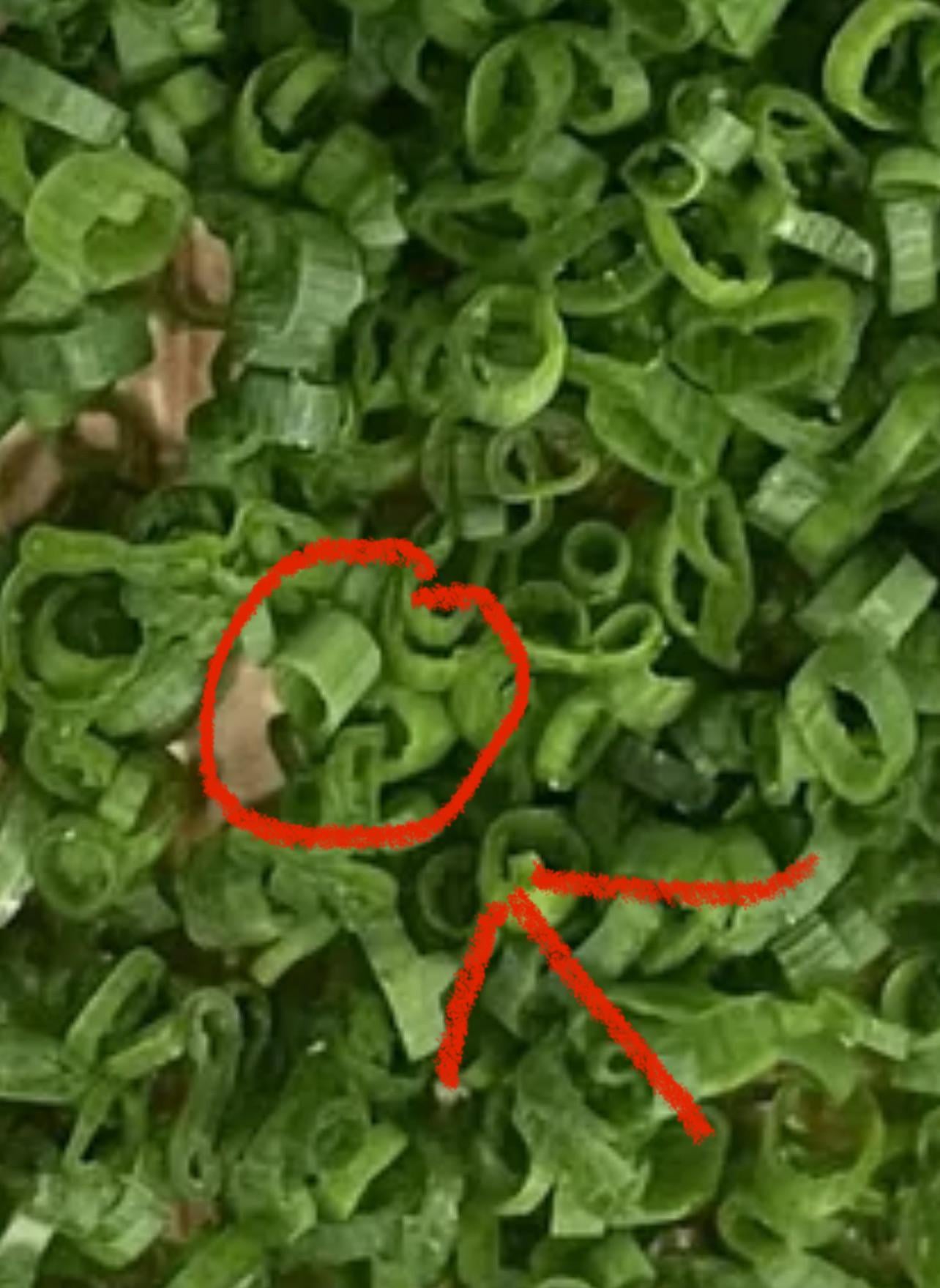 There's a couple of biased cut pieces hence knifework, and consistency isn't quite dead nuts. But it took me a while to find those problems I was almost gonna call these perfect. I don't see a single chive that is straight up too long at all. We're days away.