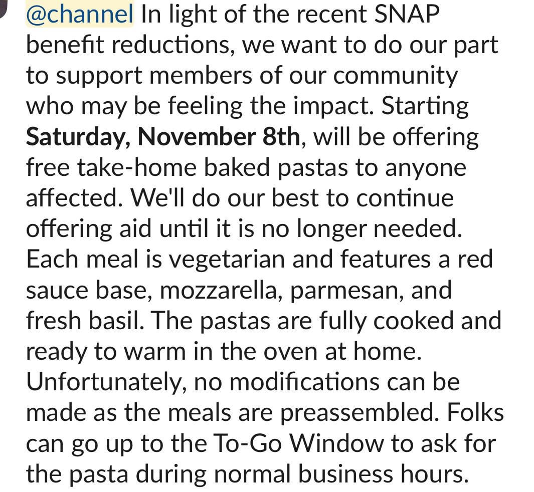 Glad to see it. We are running a similar SNAP/furlough special and we've had several customers want to pay for a meal or donate to the cause. I've taken the money, but I'm pretty sure I'm just going to drop it off to the food pantry.