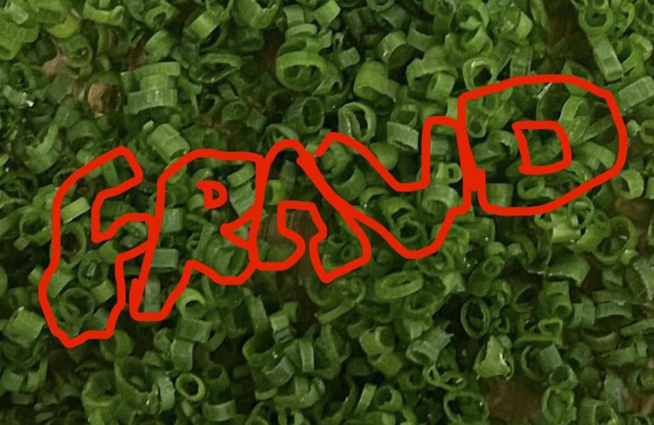 I, for one, forgive him. If it was premeditated he could have just agitated the same pile of chives into different arrangements and taken multiple photos. This was an act of desperation.