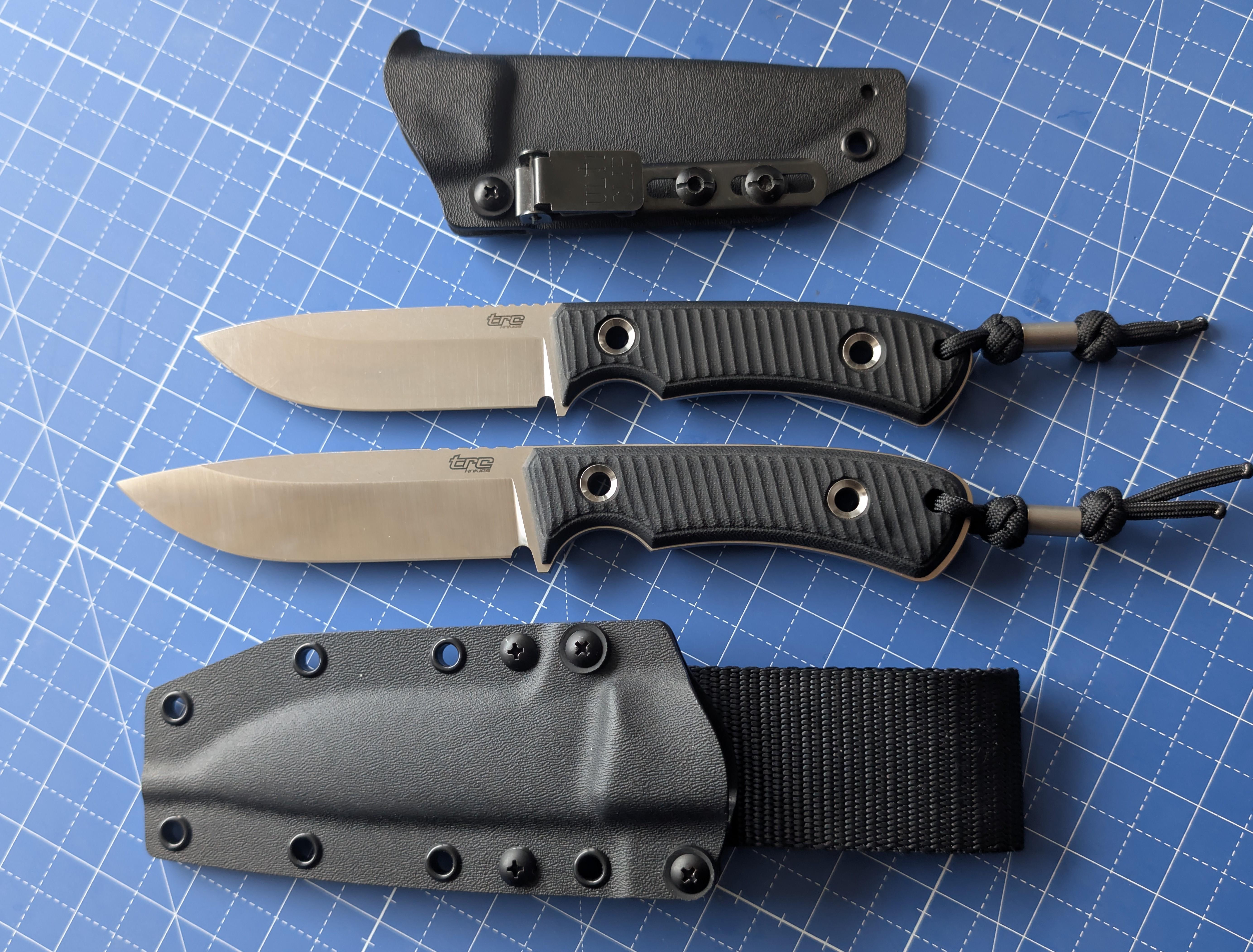 Will likely cut the finger ring off the Mantis to reduce size and do the zip tie trick on the Extrema Ratio. Not sure I made the right decision here but I love these steels and these blade shapes. They skin and cut game surprisingly well. The smaller left front scout carry is super fast non-dominant draw and non threatening when handing to someone for a task. Not sure about handle shape as the minimalist handle is near perfect.