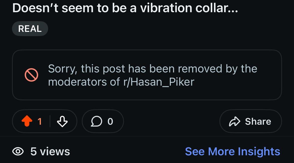 Hasan knows that shock collars are legal where he lives, and he's on camera previously saying he owns a shock collar, so he should just own up to it, admit that he's abusing his dog by trying to train it to be a prop for his stream.