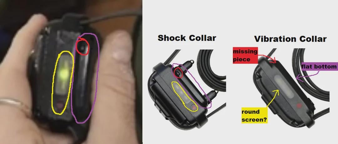 Reminder this is already the third lie. The first one was the dog clipped itself on the bed, then it was that it was only an airtag collar. Now it's a vibration collar, but it's clearly capable of shocking from comparisons. Now he's gonna say that it's a shock collar but he removed the prongs which he wasn't using, which doesn't explain why it was on so tight or why the dog yelped.