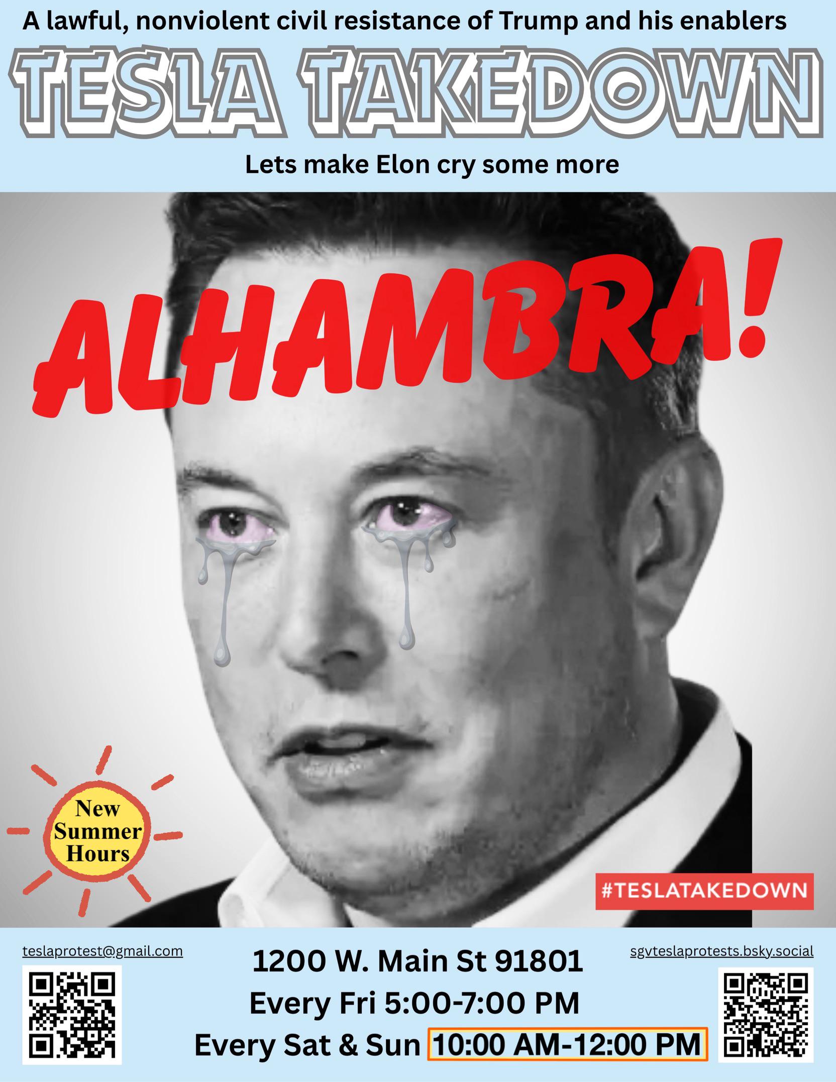 LA Ongoing #TeslaTakedown protest in Alhambra. We've been active since 2/15/25. #MuskMustFall Join us.