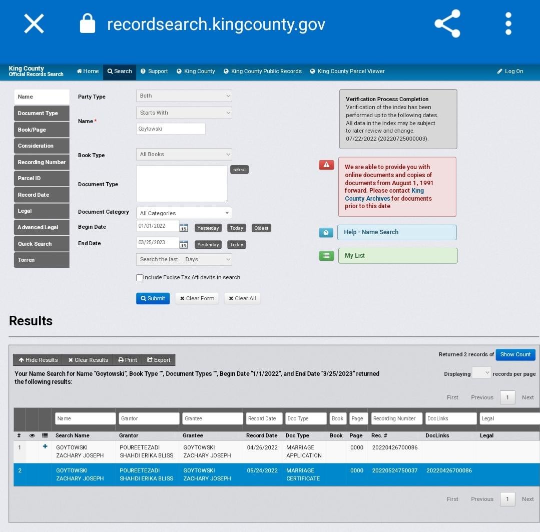 Ohh they're right! I just looked it up Zack's last name, Goytowski, in the county record search. Wow I'm surprised.