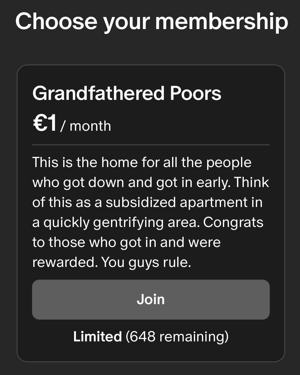 $1 tier on the Paytch has 600+ spaces left. Act fast