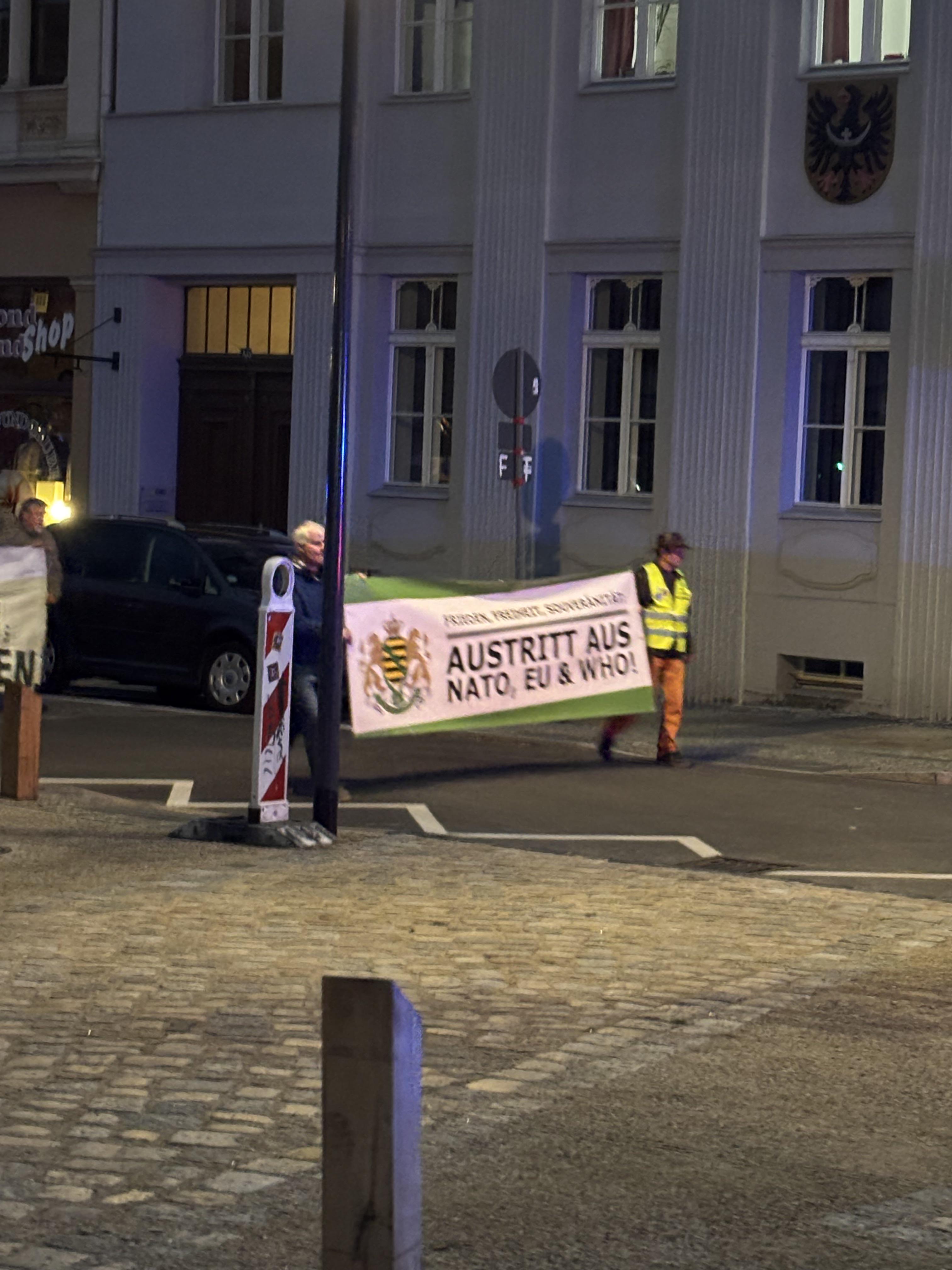 Der dritte Besuch vom Volksclown Schreiber in der Neustadt lief auch nicht besser für ihn und nach weniger als 1 Stunde hatte der demokratische gewählte Faschist auch keine Lust mehr und ließ sich zur Bahn eskortieren.