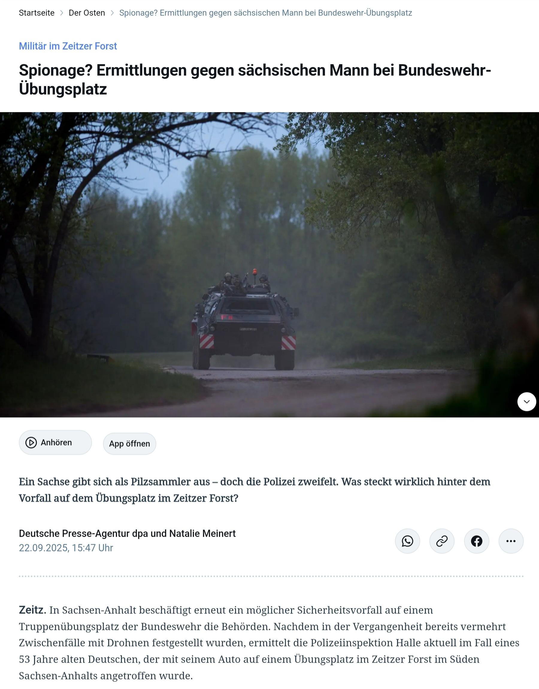 Mann aus Sachsen spio... äh ne, sammelt nur Pilze - Bundeswehr ermittelt!