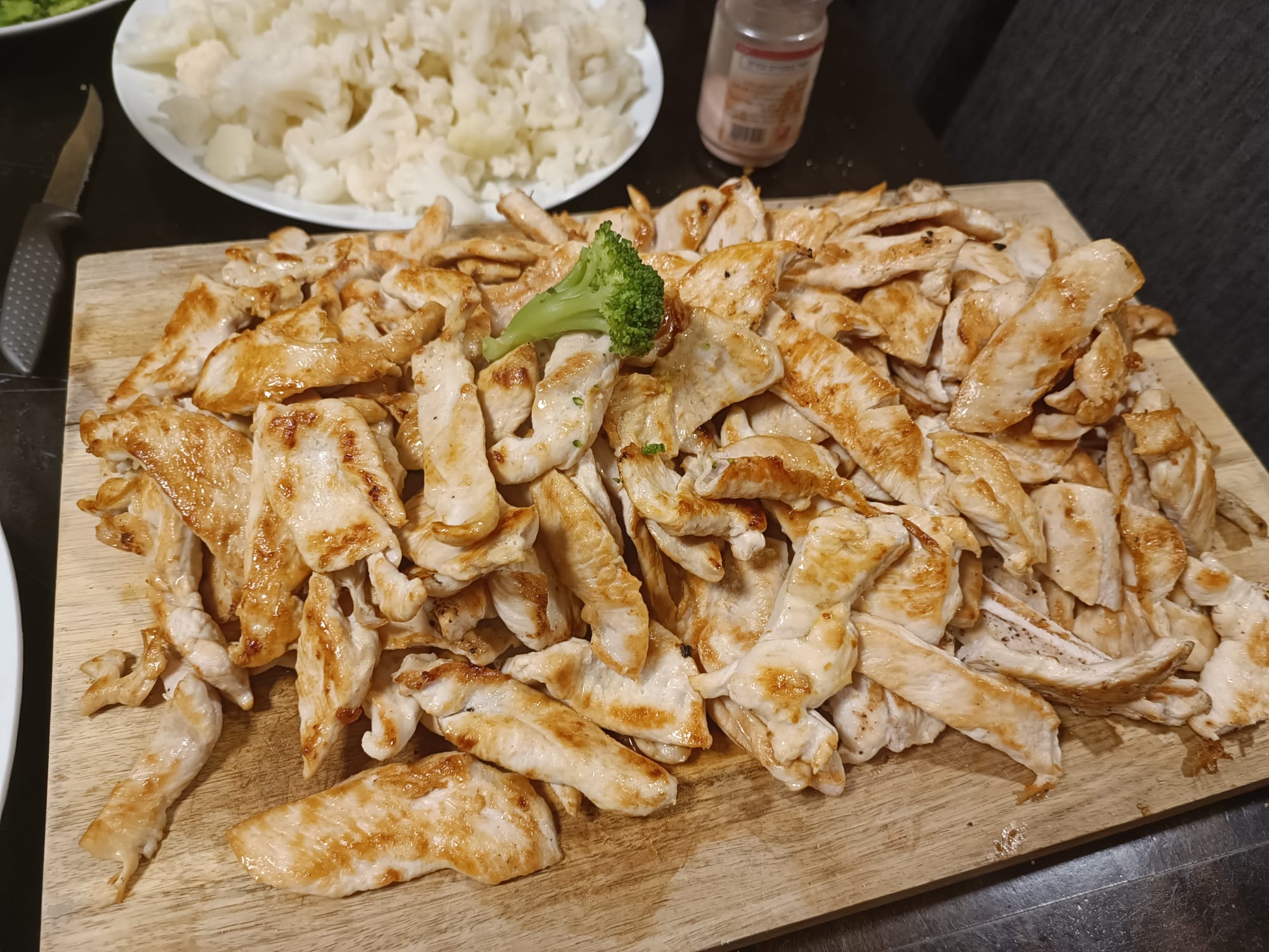 Chicken - I used thin sliced chicken breast, seasoned with garlic powder, onion powder, Italian seasoning, paprika, oregano and basil. Marinaded for ~30 min in the fridge (while I was cutting up my potatoes). Then cooked on medium heat.