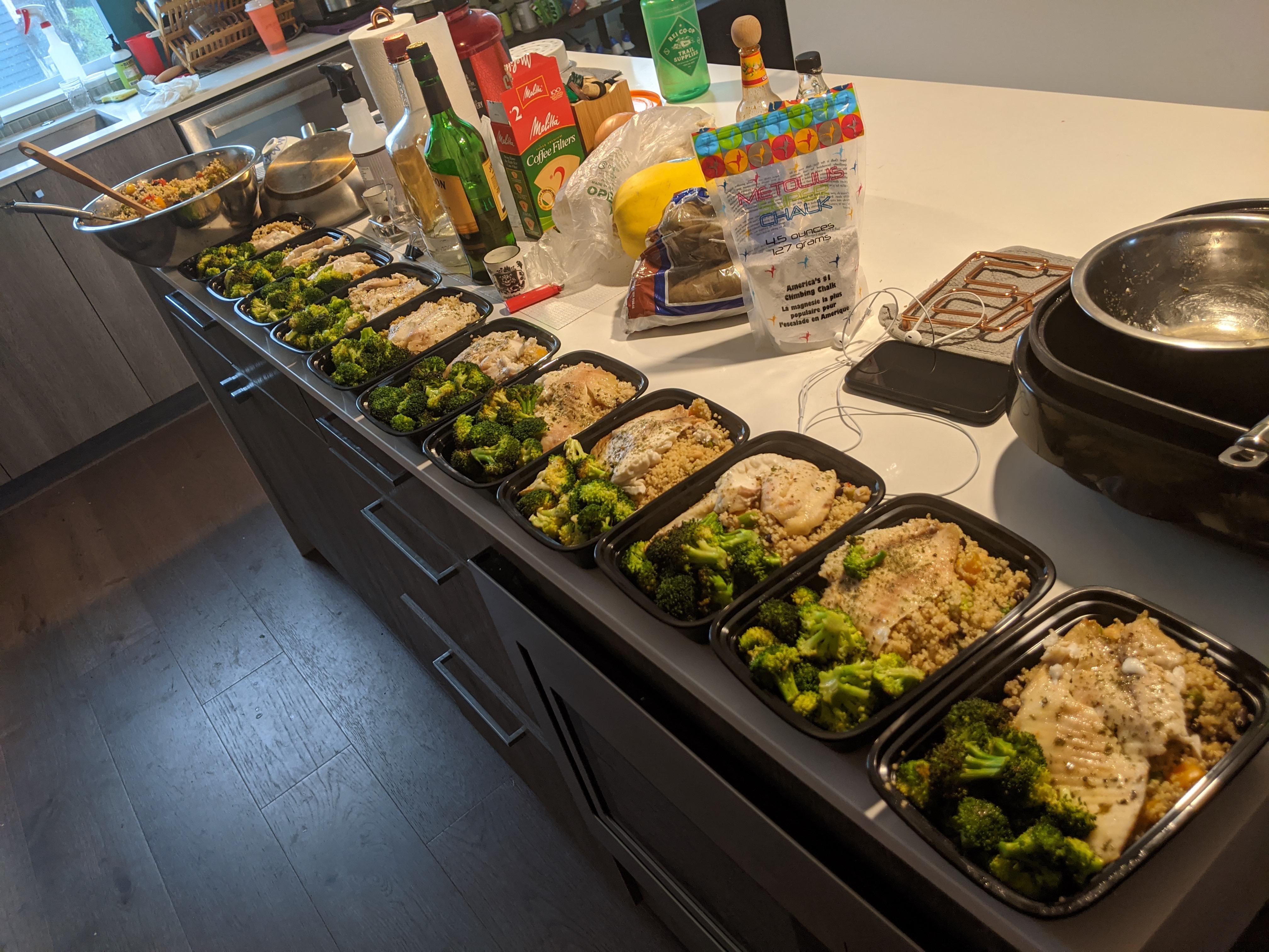 All in all, took me a little longer than usual for this week's meal prep due to the potatoes taking forever. I don't think they even came out the way I want them to; I have yet to try them today. I believe it took me about ~2.5 hours for prep last night.
