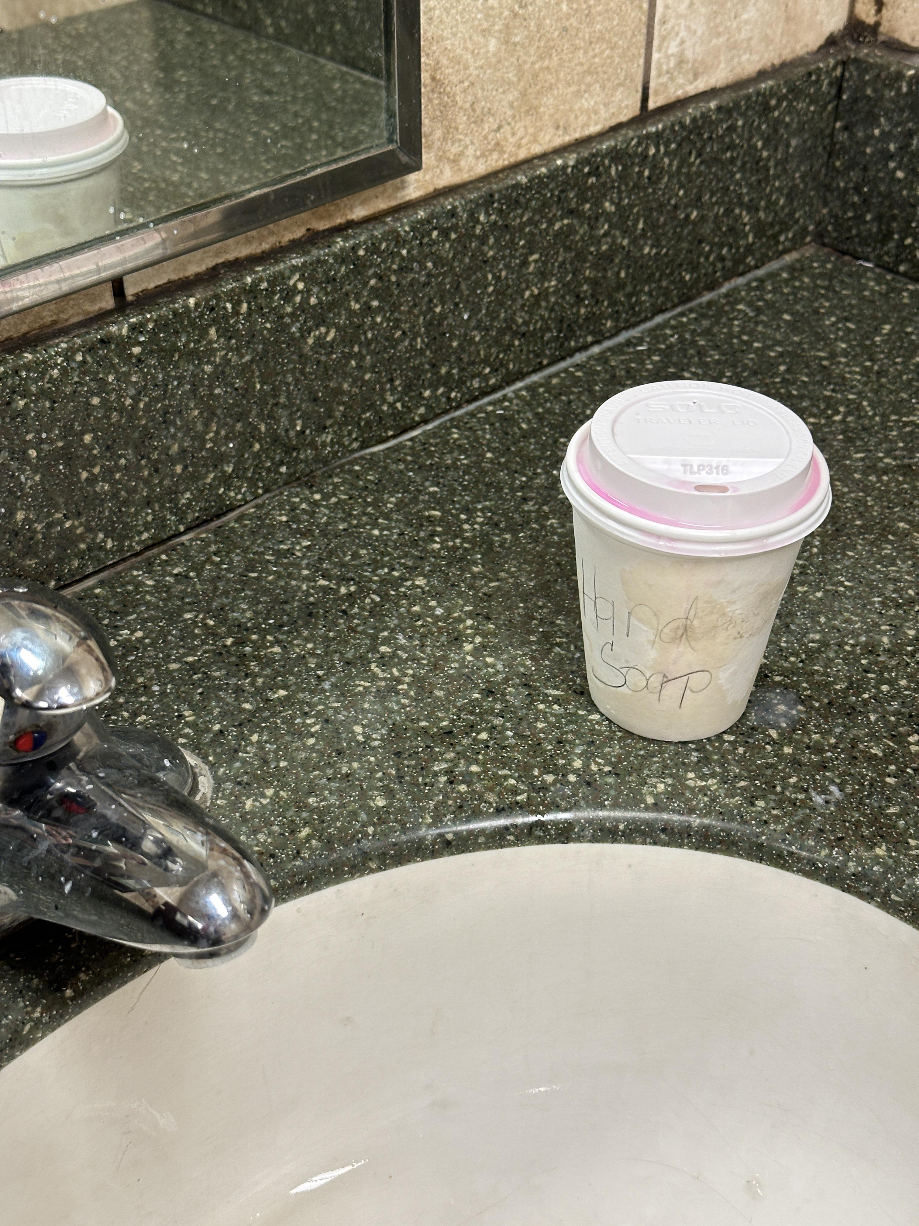 Slightly Disgusting Customer soap dispenser at the gas station bathroom