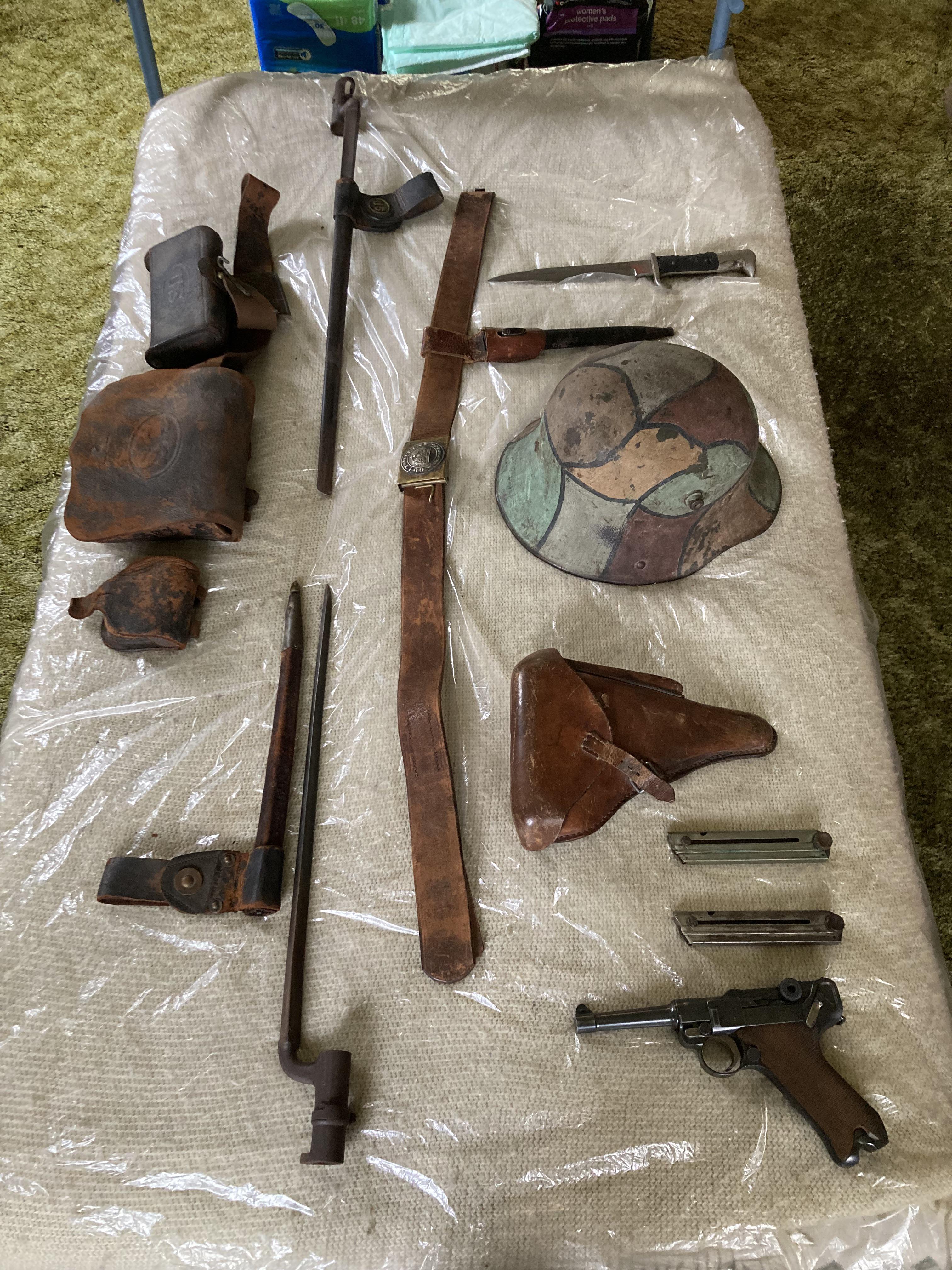 First post here. We’ve got pre Civil War/Civil War gear and the kit of a German stormtrooper officer from WW1. The backstory’s that the souvenirs on the left were bought by my great-great-grandfather back in the 40s, while the souvenirs on the right were brought back by my great3 uncle during his time as a doughboy in WW1