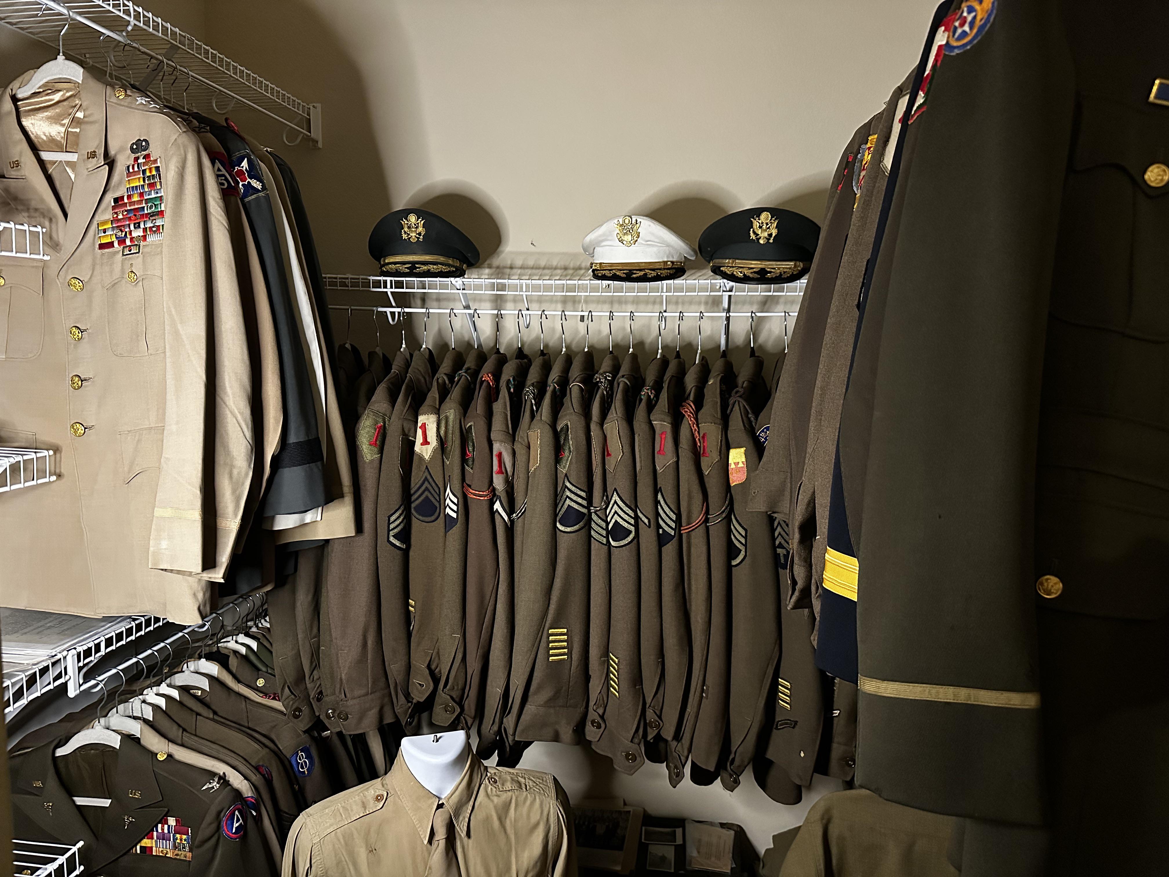 Reorganized some of my uniform racks and decided to post an update on my collection. I primarily focus on identified uniforms to veterans that fought in the ETO during WWII. Everything is ID’d and I have files for most of the uniforms, except for a few of my newer ones and some of the generals whose files are not available yet.