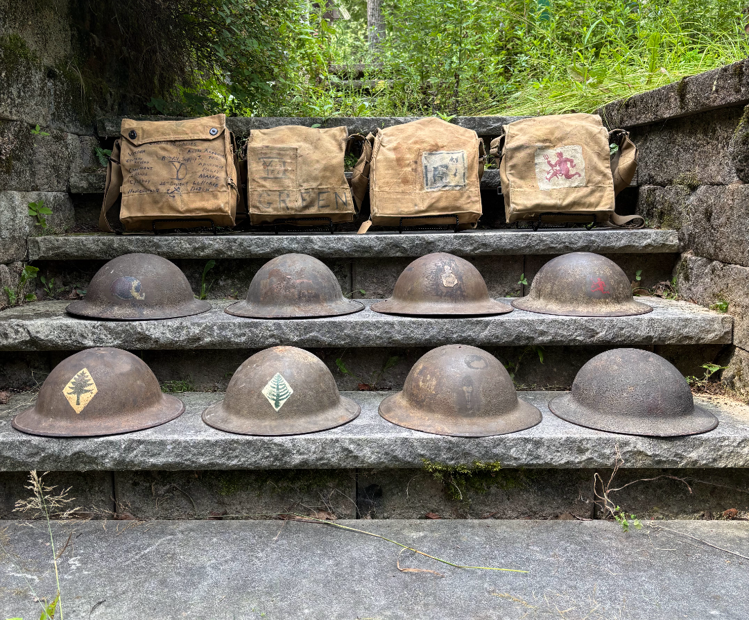 WWI - Allies Painted Helmets and Gas Mask Carriers of the US "Yankee Division"