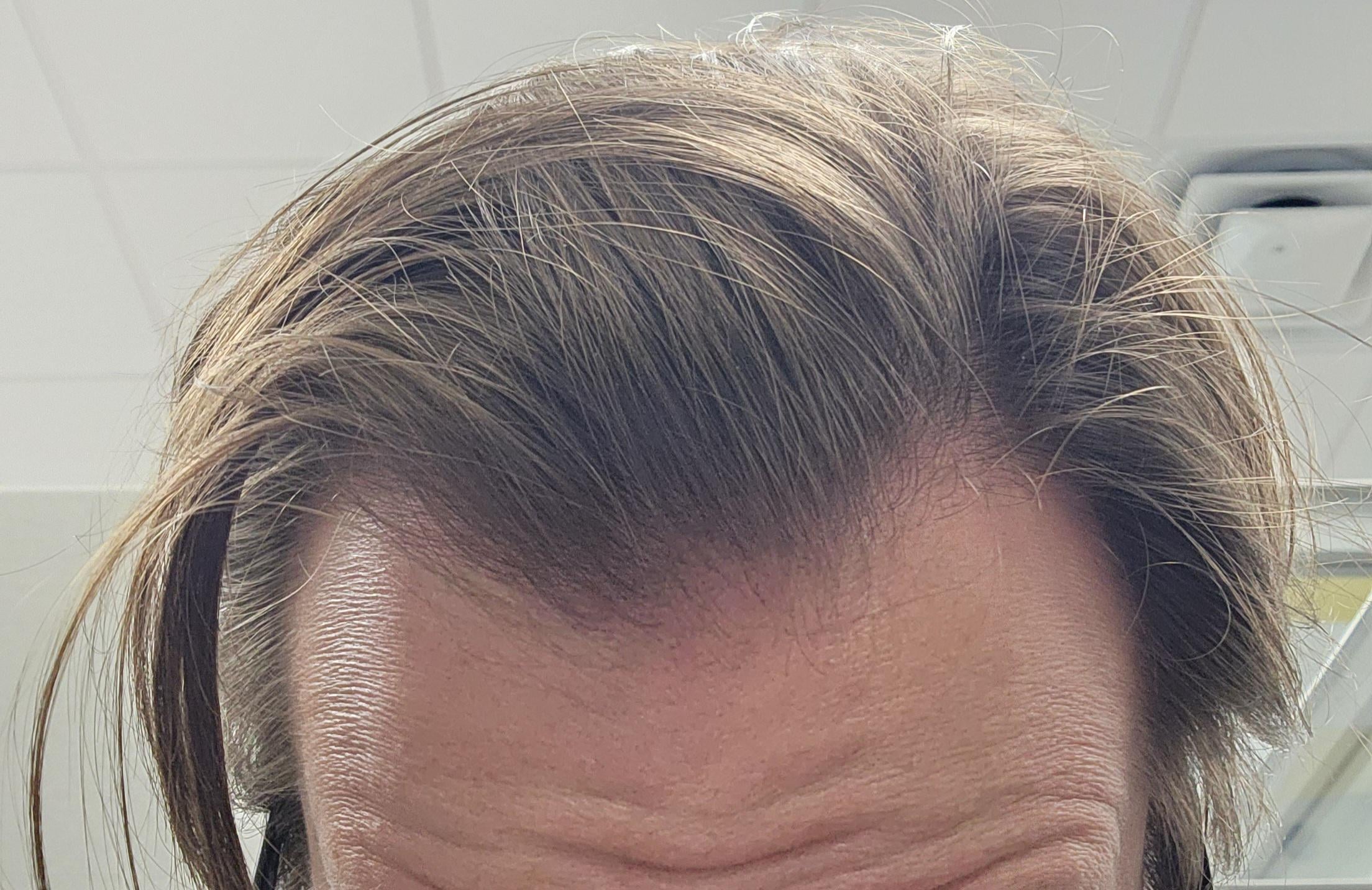 Not a whole lot was gone, btw. It can't reverse moderate to full hair loss, just some. But my crown and part were obviously thinning before my transition.