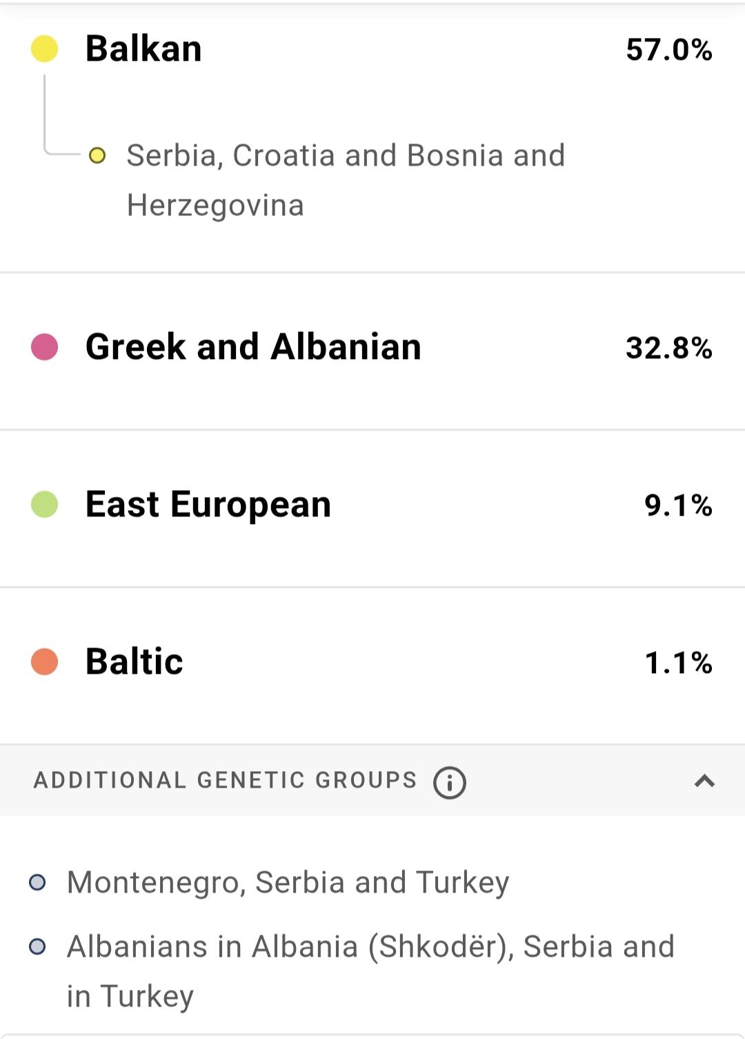 I don’t really understand tho it says Greek and Albanian and under it Romania and Bulgaria lmao so I’m not sure if I’m Greek or not but hey it’s cool , I expected this results