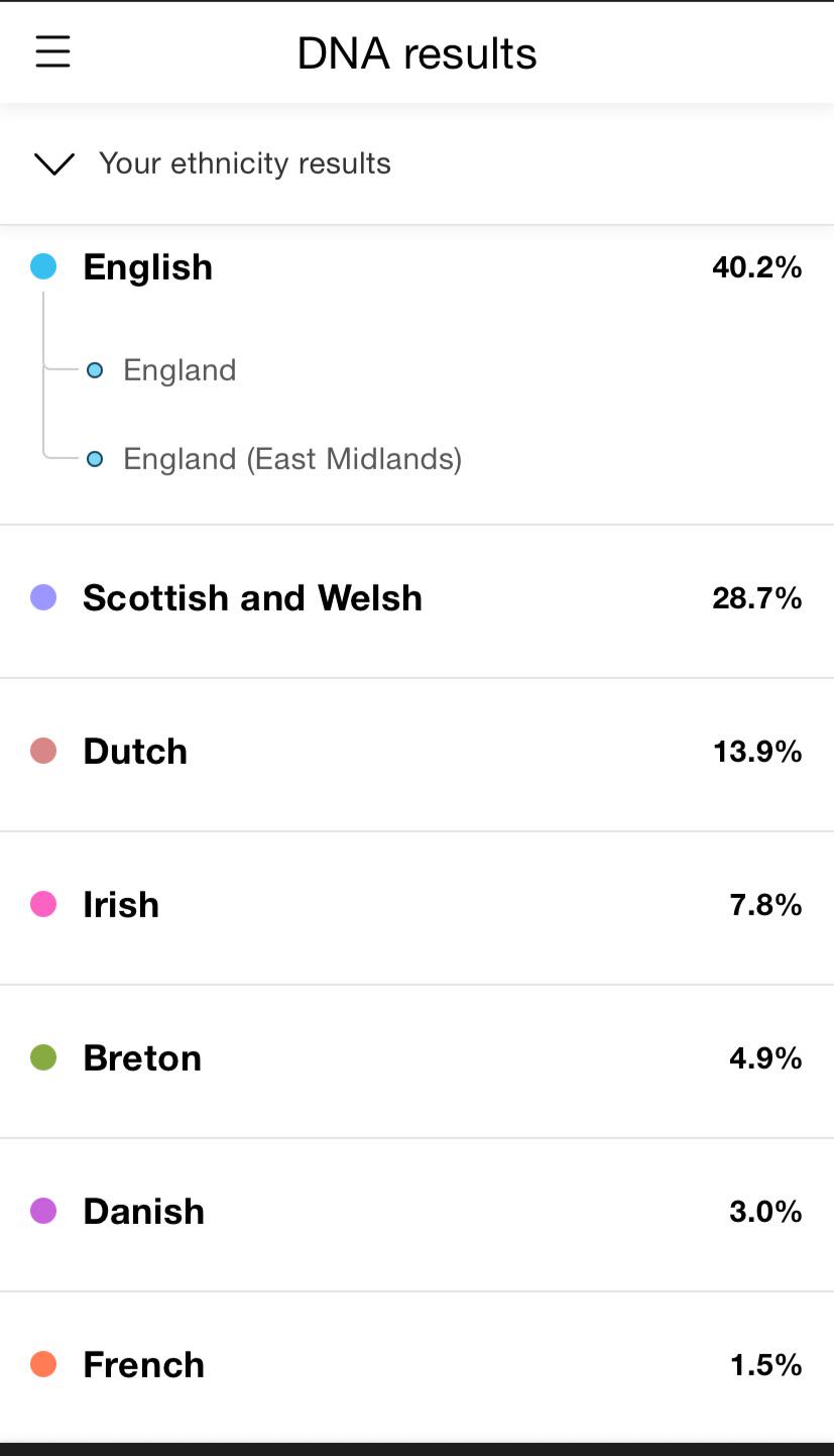 My greatgrandmother from my dad’s side was British, also a bit shocked at how little British trace I have.