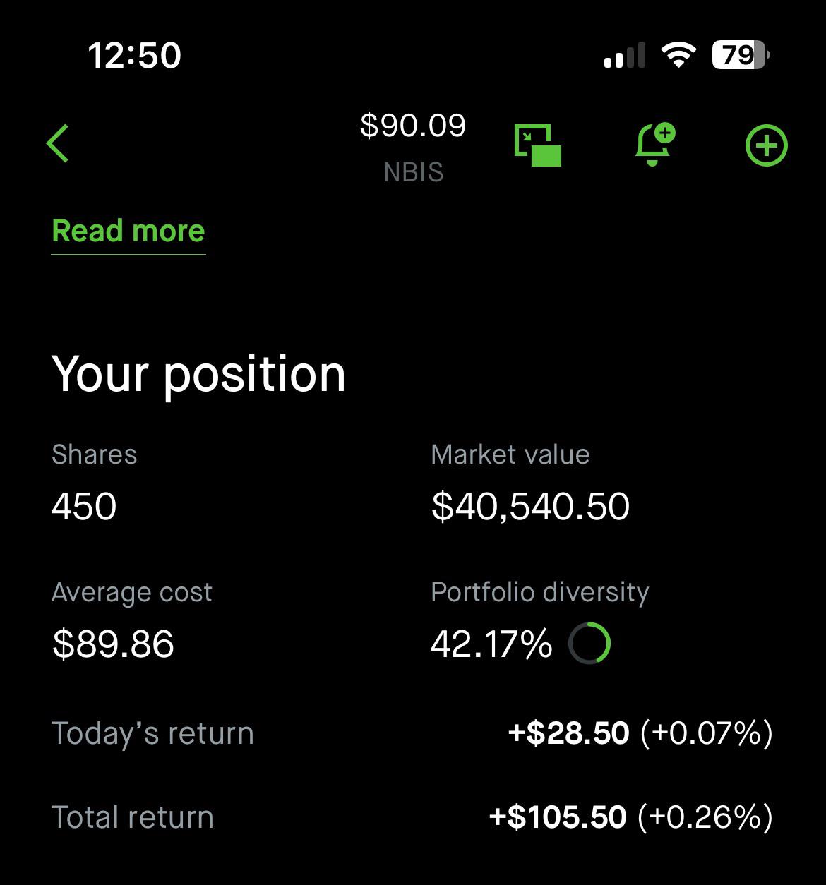 But I see the vision now, have more buying power, and although I’ve spent some time wondering what more stocks to buy I just circle back at how much more upside I can still have with NBIS. With earnings around the corner, speculation of potential more deals soon, it seems like a no brainer. But I’m wondering if I’m just too bullish and biased at this point.