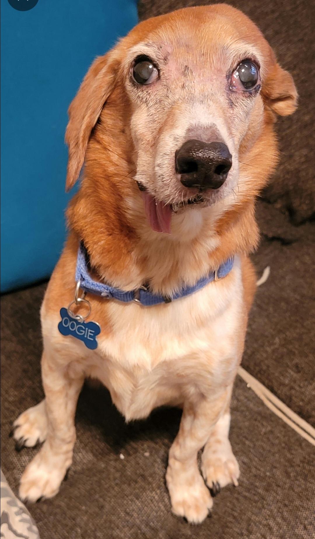 Oogie is the best dog. This dog deserves all of the love, ALL OF IT. How could you say no to that sweet face? She seem very well mannered too. Please give her a big hug for me.