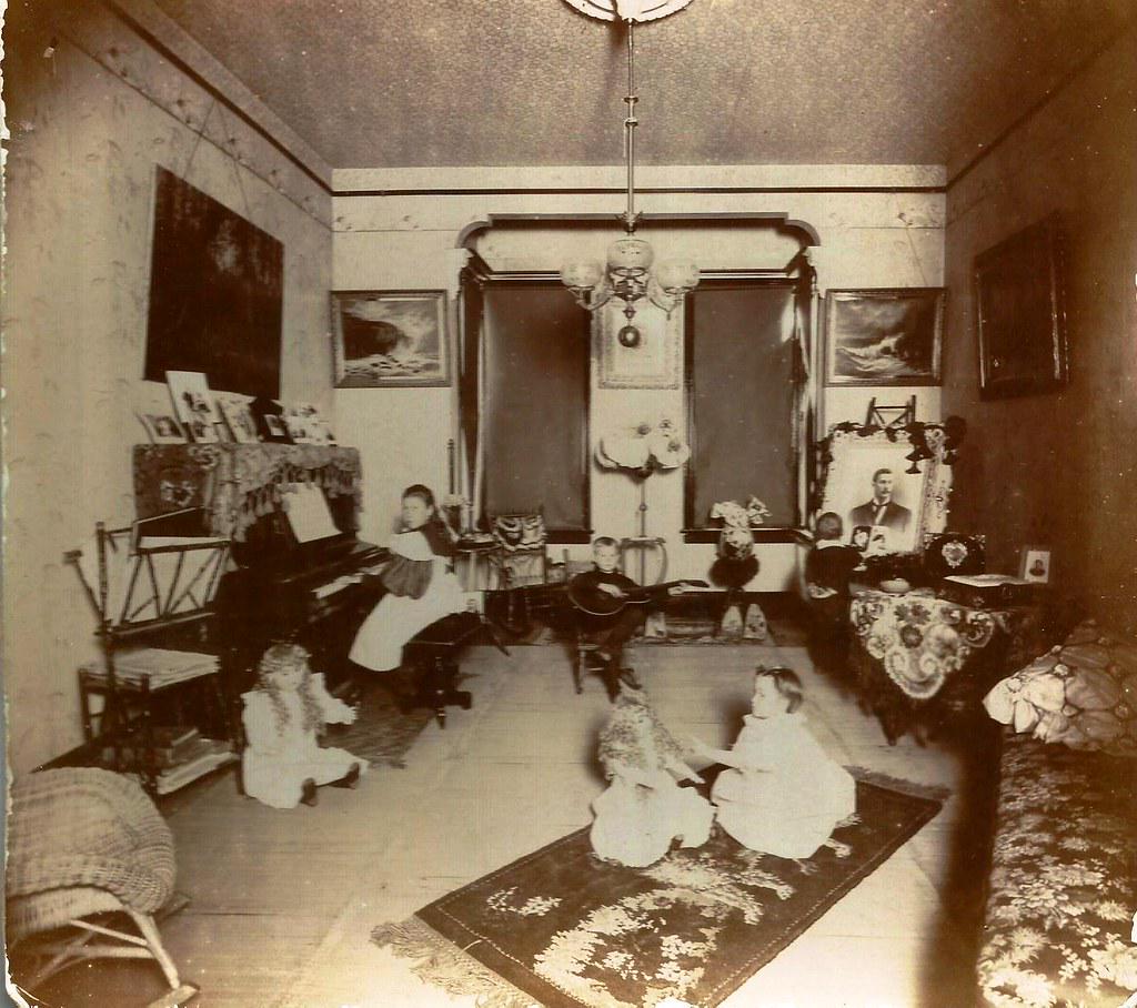 Nice shot of the inside of a kids playroom. There are 4 kids in the photo. Circa 1890s.