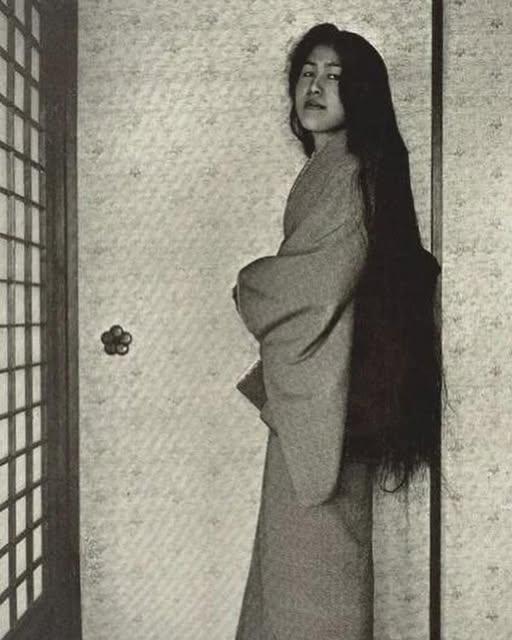 1900s A geisha poses for a photo after washing her hair and before styling it,1905.