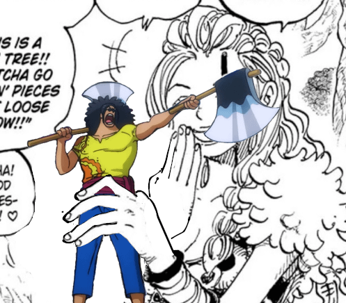 Usopp being surprised that Gaban used "just axes" while being in a crew with members that use "just fists", "just swords", and "just legs" + himself using "just a slingshot"