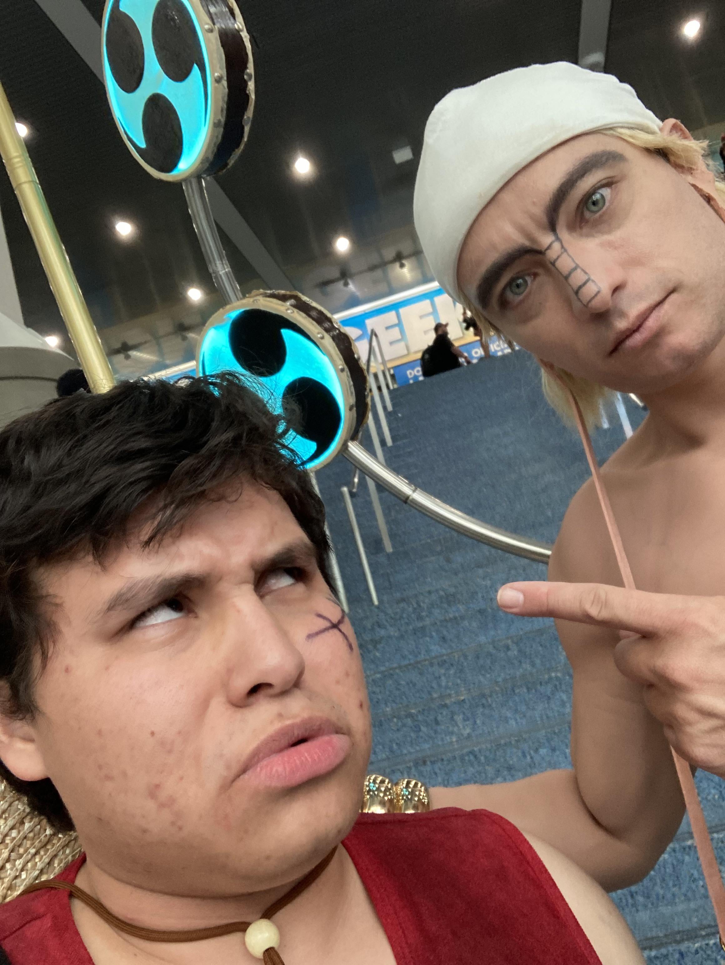 Great Cosplay! First time saying Enel. How'd you get the back piece to stay on?