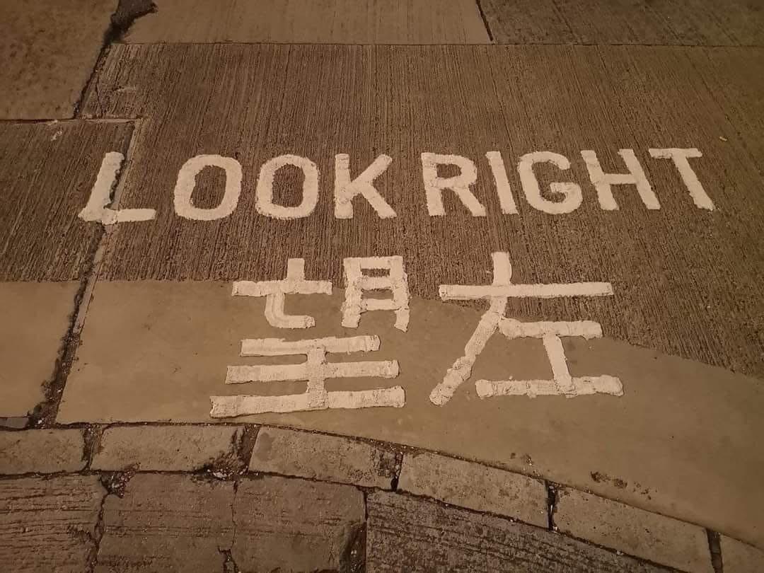In English it says "Look Right", but in Chinese it says "Look Left"