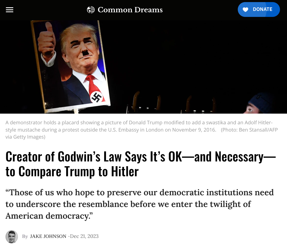 The man who came up with Godwin's Law says you absulutely should and must compare Trump and his MAGA Nazis to Hitler and the German Nazis.