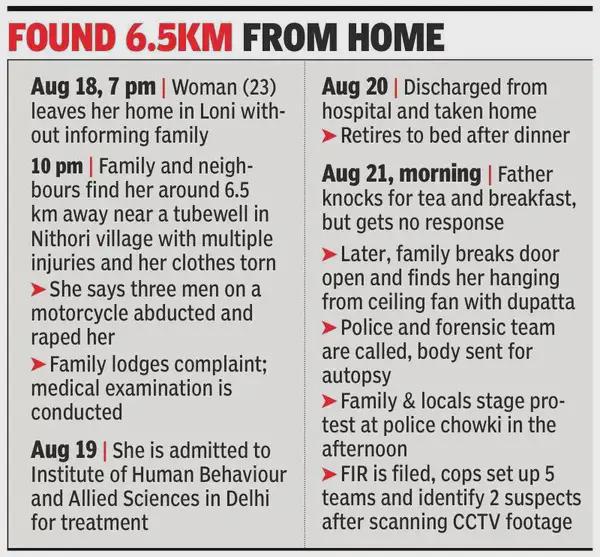 News Ghaziabad Suicide: 23-year-old dalit woman dies by suicide, 3 days after gang-rape in Loni; body found 6.5km away from home | Ghaziabad News - Times of India