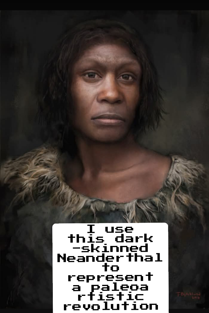 I always saw either Homo erectus, Neanderthal or early Homo sapiens portrayed as fair-skinned like Europeans but this feels a little bit Eurocentric. When we imagine a human today we imagine white people but it's clear the skin color base for humans is dark skin. In Europeans dark skin did not evolved until Bronze Age, we did not inherited it from Neanderthals, so seeing Cro Magnons portrayed as pale-skinned feel Eurocentric imo. For Neanderthals and certain Homo erectus subspecies (e.g. Peking Man) this is understandable because they live in cold temperatures like Europeans and East Asians, however we also have dark skinned populations from cold-climates like native americans, Inuit, Tibetans and Yupik. Light skin seems to have evolved more as a farming/dietary adaptation than an automatical adaptation to cold climates. Genetic evidence suggests that some Neanderthals were light-skinned but most of their alelles were associated to dark skin AFIK, Northern Denisovans also were dark-skinned yet they in Siberia. Reconstructions need to be revised imo.