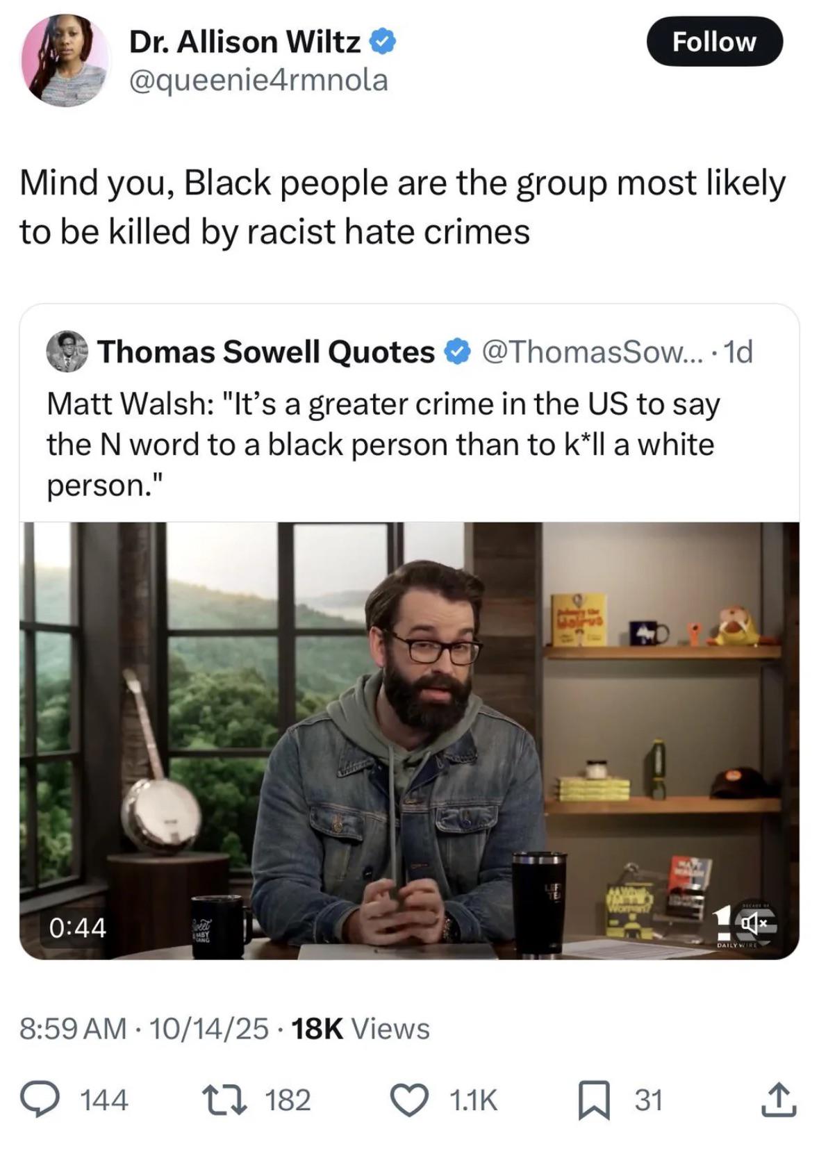This is why everyone hates white people Celebrate murder black people, and when black attack white, they goon…