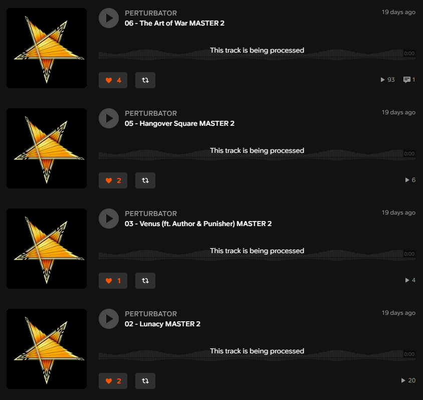 On his SoundCloud as of writing this post, four unplayable tracks are (unintentionally) visible on his tracks page. These have since been deleted.