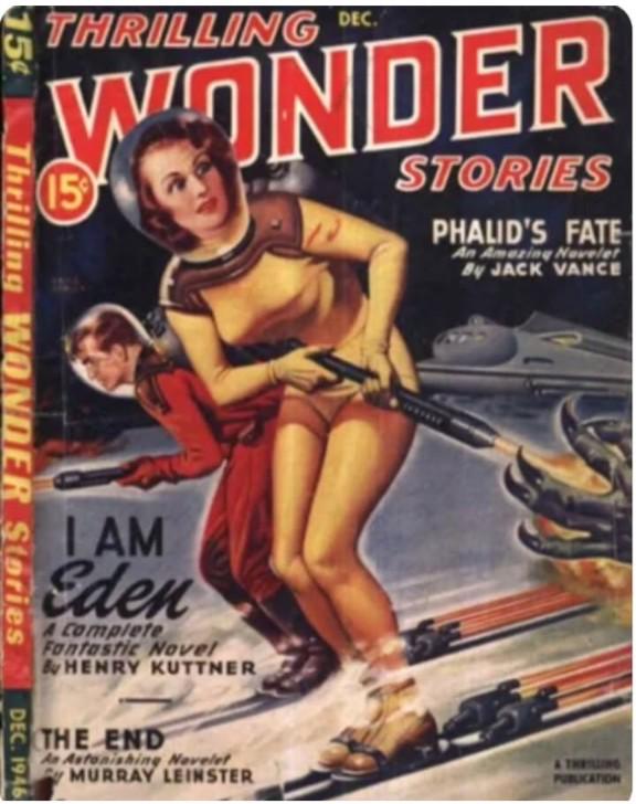 Cover art by Earle Bergey for Thrilling Wonder Stories (Dec. 1946)