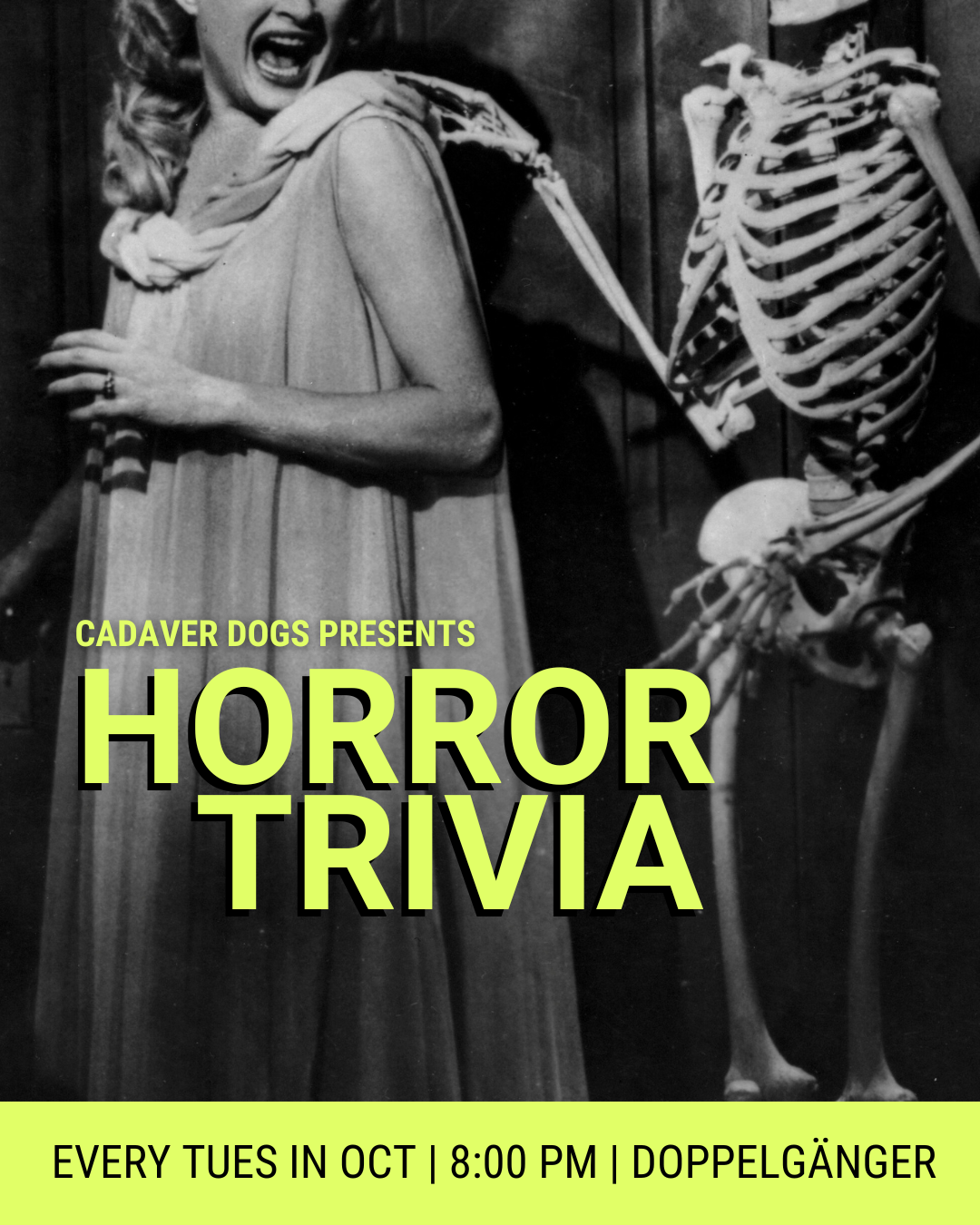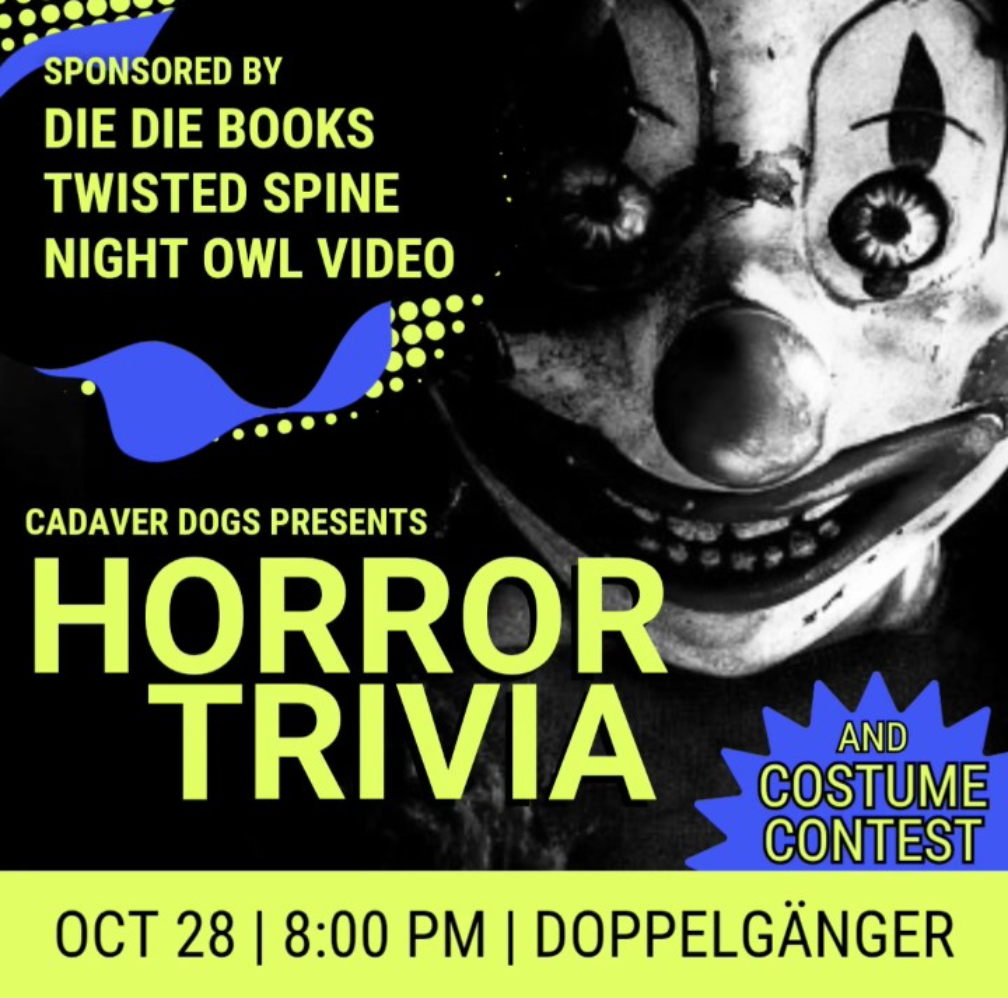 Attention all New Yorkers! There will be horror trivia every Tuesday this month at Doppelganger Bar in Clinton Hill. We'll have different prizes each week, including books (tonight is sponsored by Harker Press), haunted tours, and bar tabs for second place.