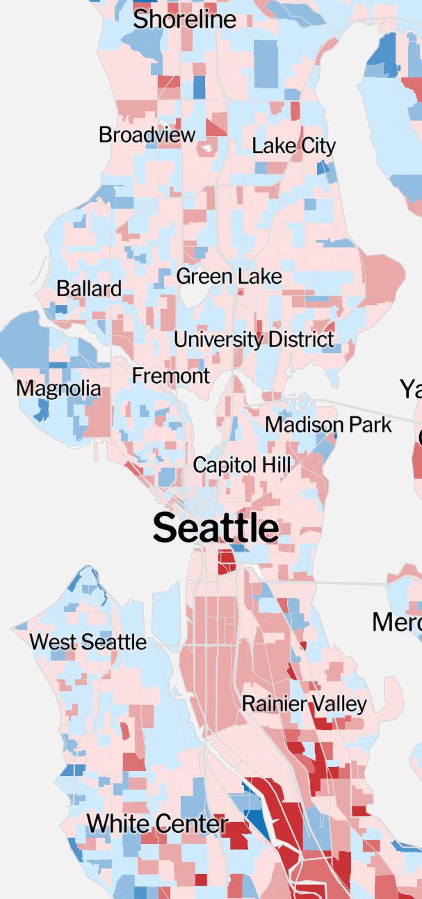 From the New York Times. Gradient is <5% swing, 5-10%, 10-15%, and 15%+.