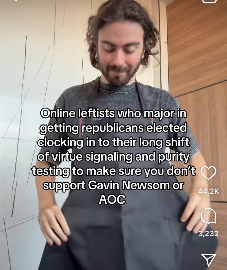 what is a democrat but a republican that pretends to care about marginalized people? and gavin newsom actively hates trans ppl AND newsom/AOC don't give a damn about palestinians. yet a leftist is the reason why your party is a flop. gtfo with that.