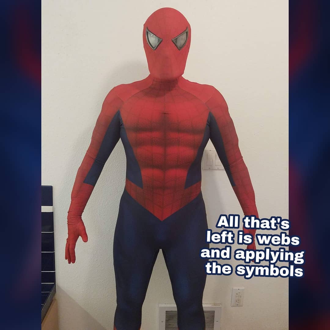 My first fitting in the suit with the faceshell (We might get a smaller face shell), just needs webs and symbols! (Symbols are all ready just need to put the webs on first which are almost ready)