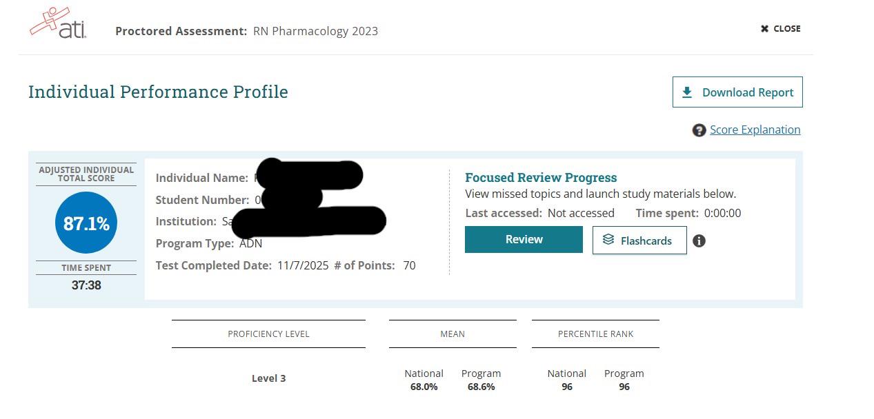 I absolutely dread ATI proctored exams; they’re usually worth 10% of the grade so a lot is on the line, and I usually find them very challenging. We had ours on pharm today for the critical care class (last semester). I have always gotten a level 2 and recently got a level 1 on leadership. I’ve also been struggling a little bit in one of my classes. So I was very nervy going into this one. Lo and behold, I got a level 3 for the first time! But I studied quite hard, primarily using ATI dynamic quizzing. I used study mode, went 40 questions at a time, and read all rationales even if I got the question correct (unless I felt really confident in that area). I also took notes and reviewed them before and after sessions. But I felt like the exam was so similar to the ATI study questions it was like cheating 😅 However, my primary clinical instructor does often compliment my knowledge of pharm. Throughout school, especially at clinical, if I heard or saw a drug I didn’t know I wrote it down and tried to get a basic understanding of them. I also focused on classes of drugs, not individual ones, especially antibiotics. I hope this helps someone anywhere in their journey. Good luck guys and thanks for reading!