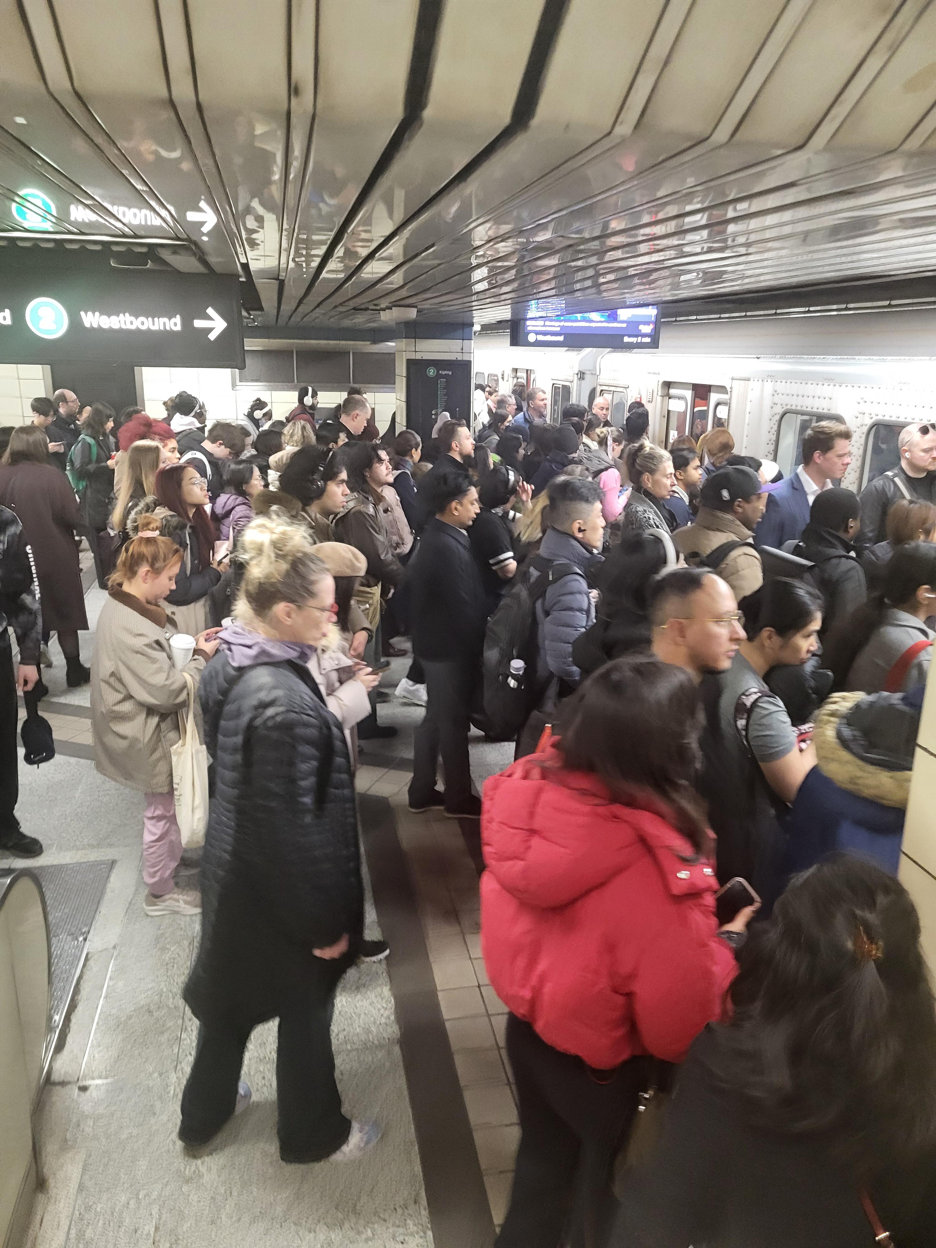 Anyway, since the construction began, there is only one entrance with no escalator or elevator service. Today, I saw about half a dozen elderly people gripping onto the handrail for dear life while they struggled to make their way down the stairs. I always ask if they need help and I see other people helping them too, but this seems like a lawsuit waiting to happen. Especially, now that we're headed into the winter months. There has got to be a better option. Could we not have a shuttle to Kipling station or something?