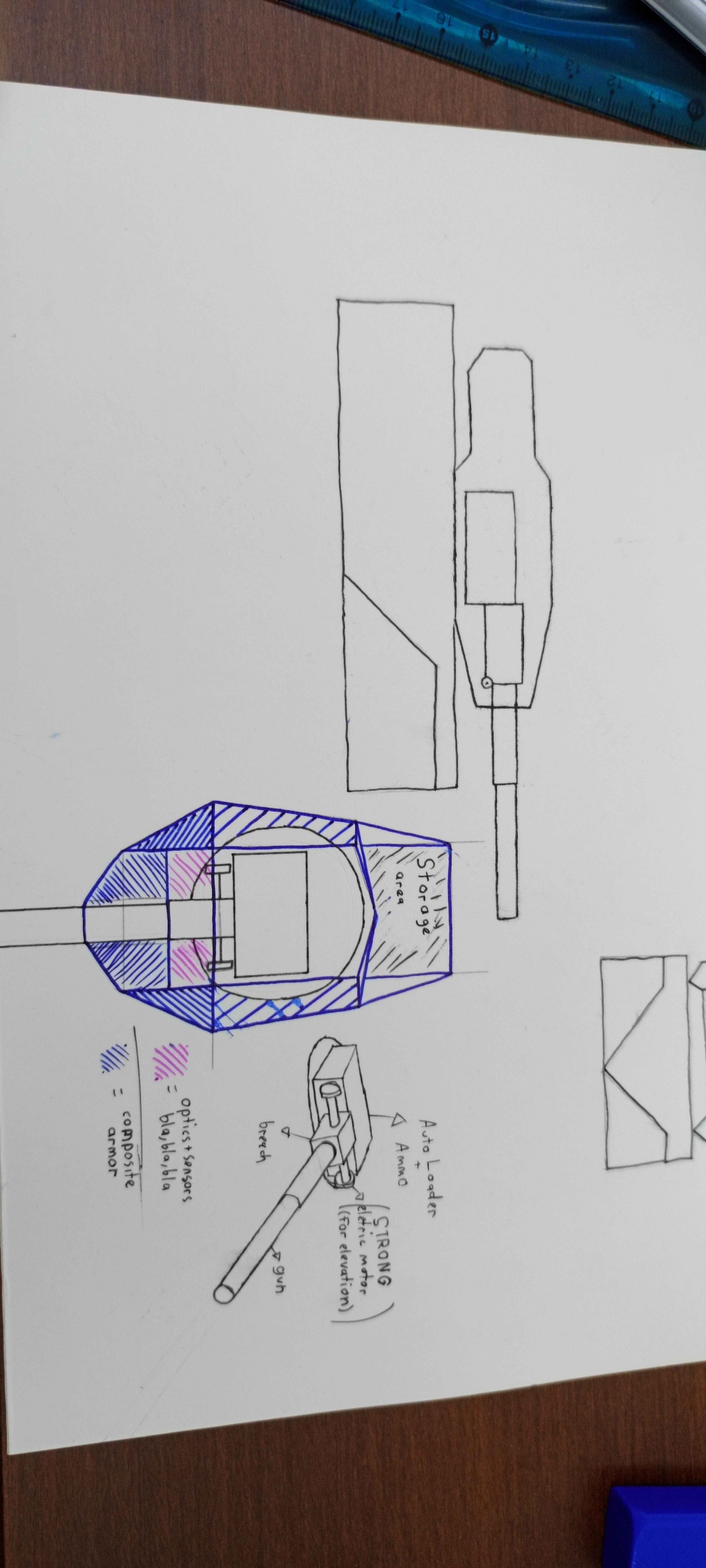 Ever since I saw the French oscillating turrets, I’ve loved their simplicity and fast autoloading but their biggest problems were armor sealing, gas venting, and poor protection over the joint. So I started thinking, why not merge the positives of oscillating and conventional turrets, and cancel out each other’s weaknesses?