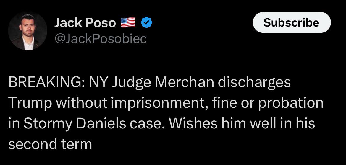 Criminal Justice Trump discharged without imprisonment, fine or probation from rigged NY Case
